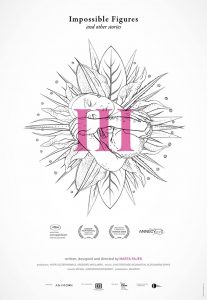Impossible Figures and Other Stories lautet eine Reihe animierter Kurzfilme von Marta Pajek. Und diesem Motto bleibt sie auch bei ihrem dritten Werk treu, welches sie der Einfachheit halber III getauft hat. Einfach fängt es auch an, wenn eine Frau durch kahle Gänge geht, völlig in Weiß gehalten, ohne jegliches Dekor. Nur ihr schwarzer Mantel dient als Kontrast. Wer sie ist und wo wir uns gerade befinden, das verrät Pajek nicht. Allgemein ist die Polin keine Freundin großer Worte – oder überhaupt irgendwelcher Worte, kein einziger Dialog fällt im Laufe der zwölf Minuten, die der Film ausmacht. Zu sehr sind die Protagonistin und der Herr, dem sie in einer Art Wartesaal begegnet, damit beschäftigt, übereinander herzufallen.