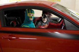 Nachdem er wieder zusammengeflickt und auf den Beinen ist denkt er allerdings erst gar nicht daran das Kostüm an den Nagel zu hängen und gerät sogleich in die nächste Schlägerei bei der er diesmal, den vielen Metallimplantaten sei dank, aber die Oberhand behält. Während er das Opfer von drei Straßengangstern beschützt filmt ein Passant das Geschehen mit seinem Handy und stellt den Clip anschließend sofort ins Internet was ein gewaltiges öffentliches Interesse auf den neuen Helden mit Codenamen Kick-Ass lenken wird. Auch Damon Macready (Nicolas Cage) und seine elfjährige Tochter Mindy (Chloë Grace Moretz) werfen interessiert ein Auge auf den neuen Star, werden sie nachdem die Sonne untergeht doch selbst zu einem Batman & Robin-Verschnitt bekannt als Big Daddy und Hit-Girl.