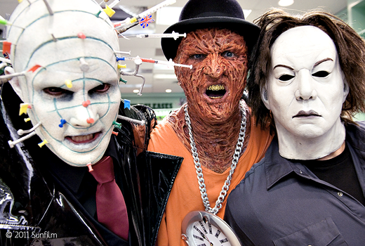 Die Kostüme sind wohl mit Absicht nicht sonderlich Originalgetreu gestaltet, aber passen so auch ganz gut in das schwache Gesamtbild. Die Story ist ebenso wie die Dialoge vollkommen sinnfrei, aber hieran sollte man ja bei Filmen wie diesem ohnehin keine Ansprüche hegen. Neben den bekannten Horrorfiguren, werden auch etliche weitere Filme zitiert und durch den Kakao gezogen. Unter Anderem kann man die „Entsorgungsröhren“ von Jeepers Creepers bewundern, eine bekannte Szene aus Ich weiß was du letzten Sommer getan hast und viele weitere Anlehnungen an die vergangene Filmwelt erahnen.