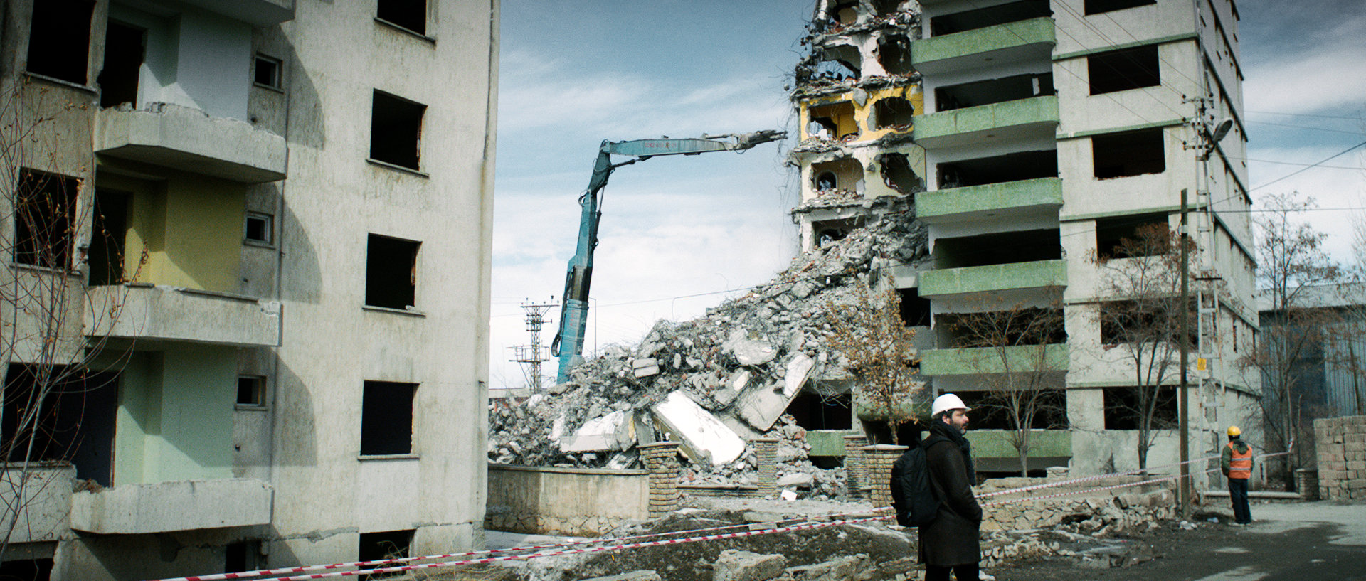 Überhaupt fand Lifelong sehr schöne Wege, das Innenleben auf den Bildschirm zu bringen. Gleich zu Beginn sehen wir, wie Ela für das Foto einer Ausstellung posiert, versucht ein Lächeln aufzusetzen, während sie sich gleichzeitig um die Platzierung eines ihrer Kunstwerke streitet – der Schein ist wichtig, in diesem Moment, im Leben des Ehepaares. Oft stehen wir in dem Drama der türkischen Regisseurin und Drehbuchautorin Aslı Özge in leeren Zimmern, vor Fenstern, später auch an Orten, die durch das Erdbeben zerstört wurden und jetzt ohne Leben sind. Die unterkühlte Trostlosigkeit, sie ist der Spiegel der Protagonisten, die Verbildlichung der Stille zwischen ihnen. Ob Can ein Ehebrecher ist, wird dann auch nie abschließend geklärt, denn darum geht es hier gar nicht, sondern um zwei Menschen, die verlernt haben, miteinander zu reden.