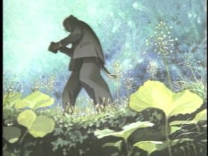Inhaltlich ist Spring and Chaos jedoch – nicht nur aufgrund seiner deutlich kürzeren Laufzeit – prägnanter, am Ende auch eindrucksvoller. Die einzelnen Szenen fügen sich zu dem stimmigen Porträt eines Mannes zusammen, der Figuren in Wolken entdeckte, oder verborgene Schätze in gewöhnlichen Steinen. Das Leben muss erfahren werden, nicht gelehrt, gab er seinen Schülern mit und verlegte den Unterricht dann auch gerne mal in die Natur. Während viele Szenen zwischen naiver Träumerei und poetischer Sensibilität hin und her schwanken, kippt die Stimmung oft auch ins Surreale. Wie in seinen Werken sind auch die Grenzen in Miyazawas Alltag fließend, immer wieder verliert er sich in Halluzinationen, sieht Skelette am Himmel fliegen oder seine Schwester in einem Zug vorbeifahren. Durch die Einführung der todkranken Toshi – vergleichbar zu Naoko aus Wie der Wind sich hebt – gewinnt der Anime auch eine tragische Note. Mehr noch, Kawamori gelingt es, anders als seinem berühmten Kollegen, mit Bild und Musik die entsprechenden Stellen so effektiv in Szene zu setzen, dass man tatsächlich mit den Protagonisten leidet, Spring and Chaos weh tut.