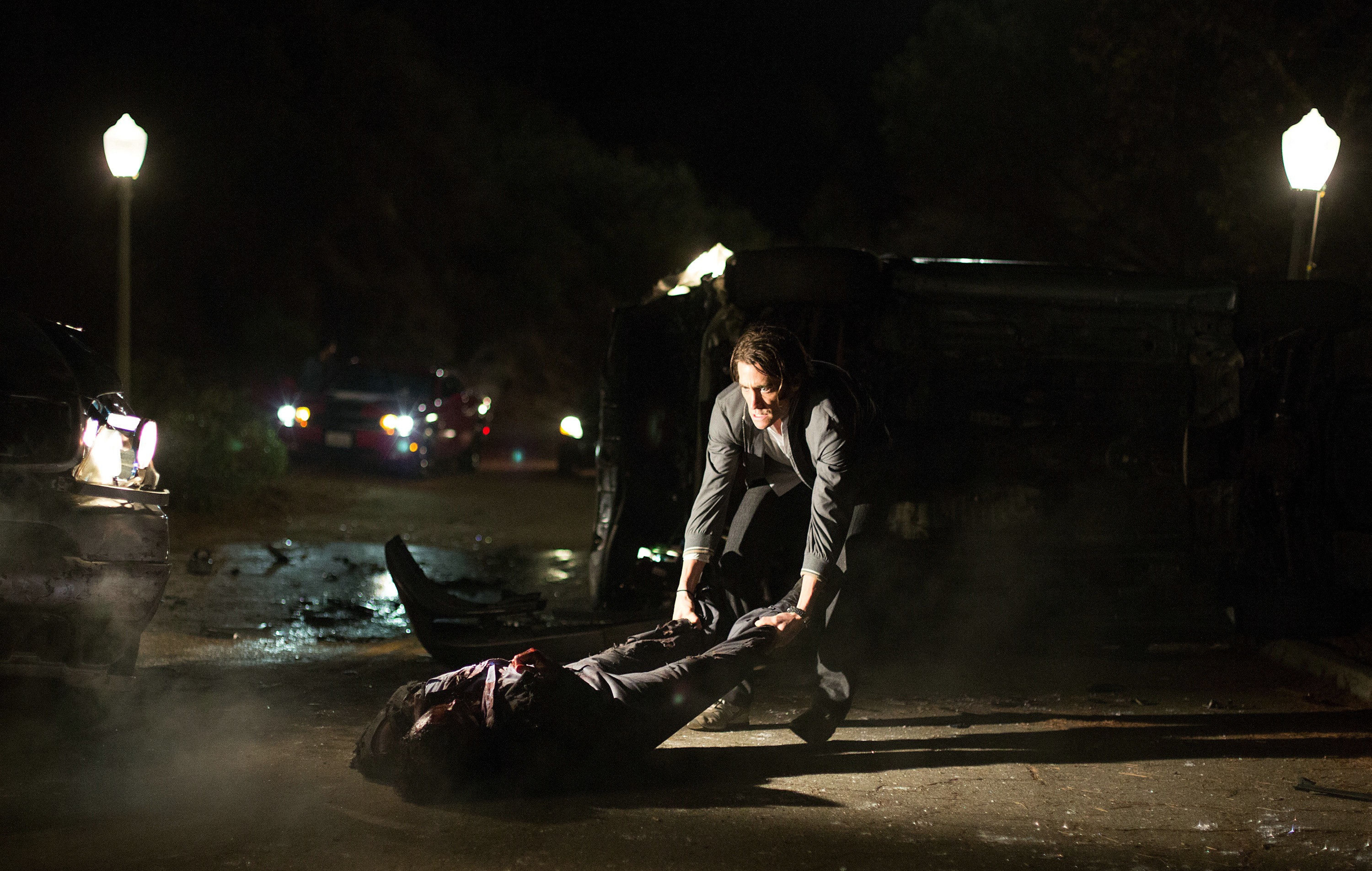 Ein Faktor der diesen Film auf jeden Fall zu einem Highlight macht ist das Spiel von Jake Gyllenhaal. Er spielt Louis “Lou” Bloom, einen jungen, schlauen und hartnäckigen Mann, der aufgrund der trüben Jobaussichten in LA in die Kleinkriminalität abdriftet. Er möchte eigentlich nur einen Job finden. Als Nightcrawler findet er einen Job, mit dem man sehr gut verdienen kann (und der darüber hinaus verspricht, sein Geschäft erheblich lukrativer zu gestalten), ist er bereit, moralische Grundsätze immer weiter zu überschreiten und sie irgendwann ganz zu ignorieren. Bei seinen Taten denkt man im Laufe des Films immer wieder, dass er nicht noch unmoralischer handeln kann, doch getrieben von der Gier nach dieser einen, noch schockierenderen Kameraeinstellung, beweist er uns immer wieder das Gegenteil.
