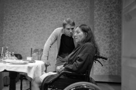 Ob es nun der Einfall ist, die Erfahrungen als Kind aus der Egoperspektive zu zeigen, ohne dass man den Protagonisten selbst je zu Gesicht bekommt, die völlig in Schwarz-Weiß gehaltenen Aufnahmen oder auch die leblos-spartanischen Einrichtungen der Wohnung: Nichts davon wirkt real, gelebt, alles ist übersteigert und grotesk, ein auf Film festgehaltenes absurdes Theater. Dass Hanno Koffler als junger Marquardt den Proll mit Berliner Schnauze gibt, der ohne ersichtlichen Anlass losbrüllt und um sich prügelt – zu unnatürlichen Schlaggeräuschen –, verstärkt den komischen Effekt ebenso wie Katy Karrenbauer als schmierige, laszive Mutter.