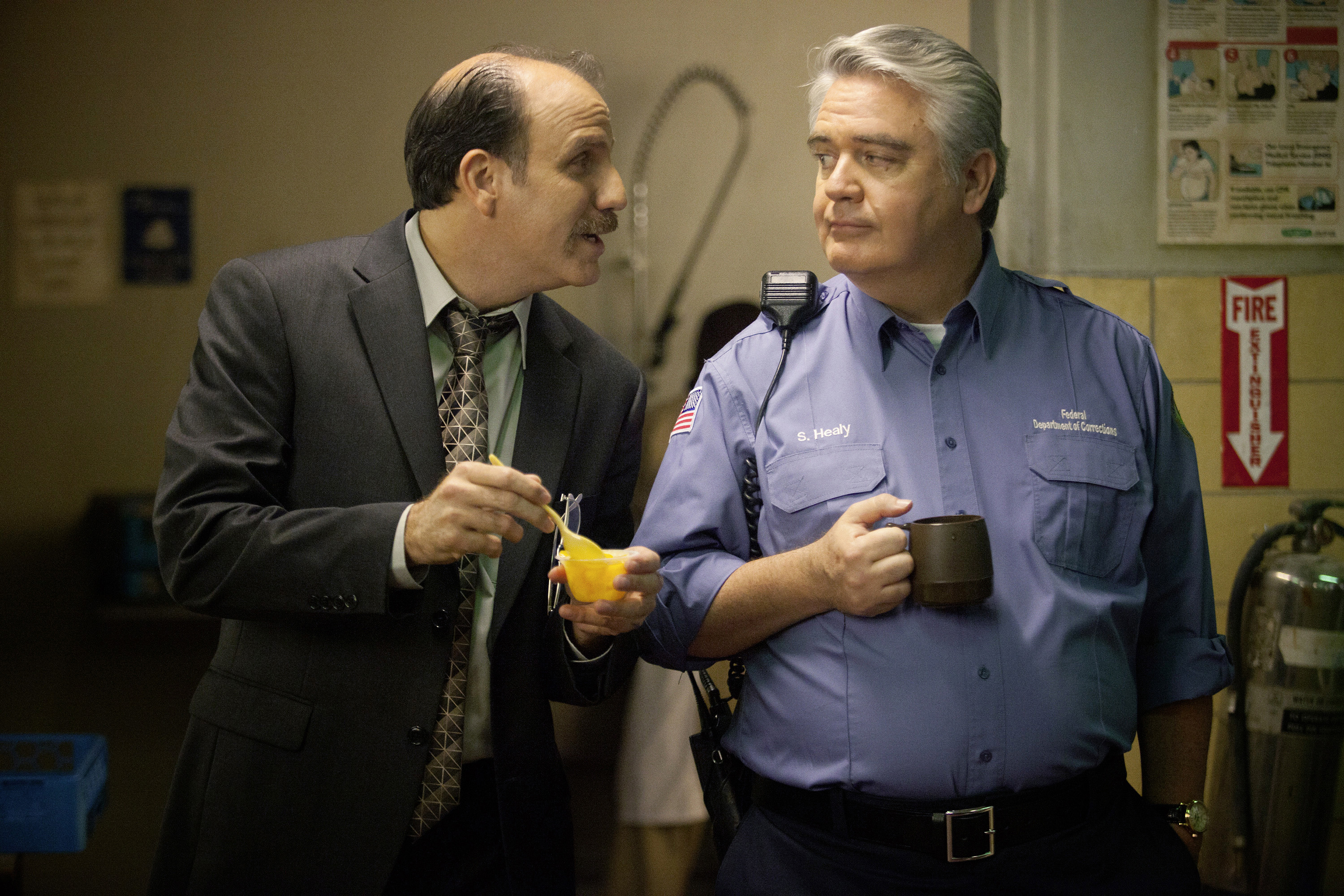 Aber Orange is the New Black will ohnehin kein reines Drama sein, wofür allein schon die überaus skurrilen Figuren sorgen – auf beiden Seiten des Gesetzes. So hat Pipers Gefängnisansprechpartner Sam Healy (Michael J. Harney) ein großes Problem mit Lesben, Wärter George „Pornstache“ Mendez (Pablo Schreiber) liebt es, seine Macht auszuspielen, und führt nebenher einen gut gehenden Drogenschmuggel. Dadurch gerät er immer wieder mit der resoluten Köchin Galina „Red“ Reznikov (Kate Mulgrew) aneinander, die ebenfalls kleinen Schmuggelaktivitäten nicht abgeneigt ist, sich aber als Schutzpatronin ihrer Mitinsassinnen fühlt und das Gefängnis drogenfrei halten wird. Auch Tiffany „Pennsatucky“ Doggett (Taryn Manning) sieht sich in einer Beschützerposition, nervt jeden mit ihren übertrieben gläubigen Ansichten. Und dann wäre da noch die psychisch labile Suzanne „Crazy Eyes“ Warren (Uzo Aduba), die Piper gleich als neue Partnerin auserkoren hat – ohne dass die da ein Wort mitzureden hat.