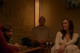 The Invitation ist aber nicht nur Thriller, sondern auch ein sehr persönliches Drama. Will, Eden, David, auch einige der Gäste – sie alle haben traurige, teils traumatische Erfahrungen hinter sich. Wenn sich das ehemalige Paar gegenüber steht, dann als zwei Menschen, die eine gemeinsame Vergangenheit haben, jedoch völlig unterschiedlich damit umgegangen sind. Was diese Vergangenheit ist, auch das wird zunächst verschwiegen, was nicht unbedingt notwendig gewesen wäre, eher für Verwirrung sorgt denn für Atmosphäre. Auch der Schluss, der dann doch wieder Genreerwartungen entsprechen will und später etwas groteske Ausmaße annimmt, hätte in der Form nicht wirklich sein müssen.