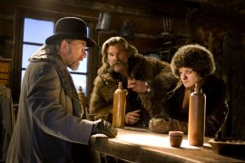 Was genau dieser Film sein soll, wird jedoch nicht klar, zu sehr setzt er sich aus verschiedenen Elementen zusammen. So spielt beispielsweise die zweite Hälfte von The Hateful 8 ausschließlich in der Hütte. Ein solch begrenztes Setting muss kein Fehler sein, genügend Theaterstücke und auch Filme haben den Beweis längst erbracht. Es kann sogar Vorteile haben, indem man das Klaustrophobische betont, das Ausgeliefertsein. Davon ist bei Tarantino jedoch wenig zu spüren. Nicht nur, dass durch die Weitwinkelaufnahmen die Hütte ständig größer wirkt, als sie ist, die sich eigentlich aus der Geschichte ergebende Spannung, wenn acht mysteriöse, wenig vertrauenerweckende Gestalten zusammen eingepfercht sind, die bleibt fast völlig aus. Nur manchmal wird hier mit der Paranoia geflirtet, erinnert The Hateful 8 an den Klassiker „Und dann gab’s keines mehr“ von Agatha Christie. Aber ebenso wie die kleinen Ermittlermomente, die gleichfalls der Krimikönigin entnommen zu sein scheinen, wird das nicht sehr konsequent verfolgt.