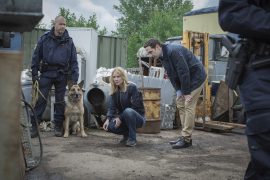 Bis es aber so weit ist und man merkt, dass da noch etwas anderes in Schwedens Wäldern umhergeht, das dauert eine Weile. Filme aus dem Norden haben es ja tendenziell eher selten eilig, und auch bei Jordskott lässt man sich gern ein bisschen mehr Zeit. Schwäche oder Stärke? Das ist bei der TV-Serie nicht so ganz klar – wie so vieles –, irgendwie ist es beides ein bisschen. Auf der einen Seite ist die unglaublich dichte Atmosphäre natürlich auch diesem Verwirrspiel geschuldet, das finstere Männer wie Harry Storm (Ville Virtanen) durch die dunkle, undurchsichtige Natur schleichen lässt, ohne dass man weiß, wer er ist oder was er da zu suchen hat. Denn spannend ist sie ja, die schwedische Produktion, fesselt und lässt einen rätseln, um was es hier eigentlich geht. Manchmal wird es dabei sogar ausgesprochen bizarr, ein bisschen an Hannibal erinnernd, bizarr und verstörend, sodass es eigentlich gar nicht mehr viel brauchen würde, um reine Horrorgefilde zu betreten.