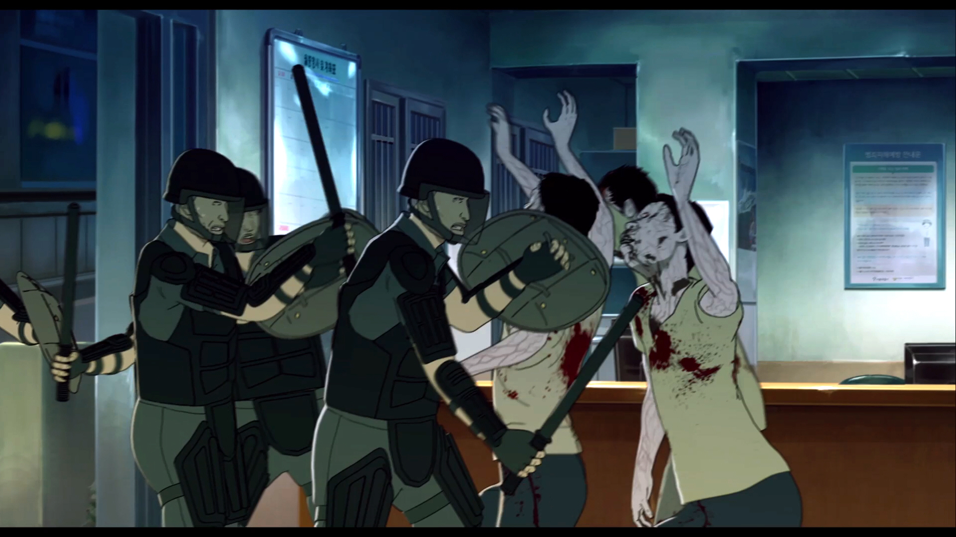 Dass beispielsweise ausgerechnet Prostituierte und Obdachlose die Hauptfiguren in Seoul Station darstellen, ist kein Zufall: Es sind Verlierer des rasanten wirtschaftlichen Aufschwungs, denen wir durch die Straßen der Metropole folgen, Ausgestoßene, Menschen, mit denen keiner etwas zu tun haben will. Wenn zwischendurch die Polizei die Zombie-Epidemie mit einem Aufstand verrückter Obdachloser gleichsetzt, dann ist das einerseits eine komische Abrechnung mit unfähigen Behörden, gleichzeitig aber eben auch ein bitterer Kommentar über ein Land, das seine schwächsten Mitglieder vergisst. Vergessen will.