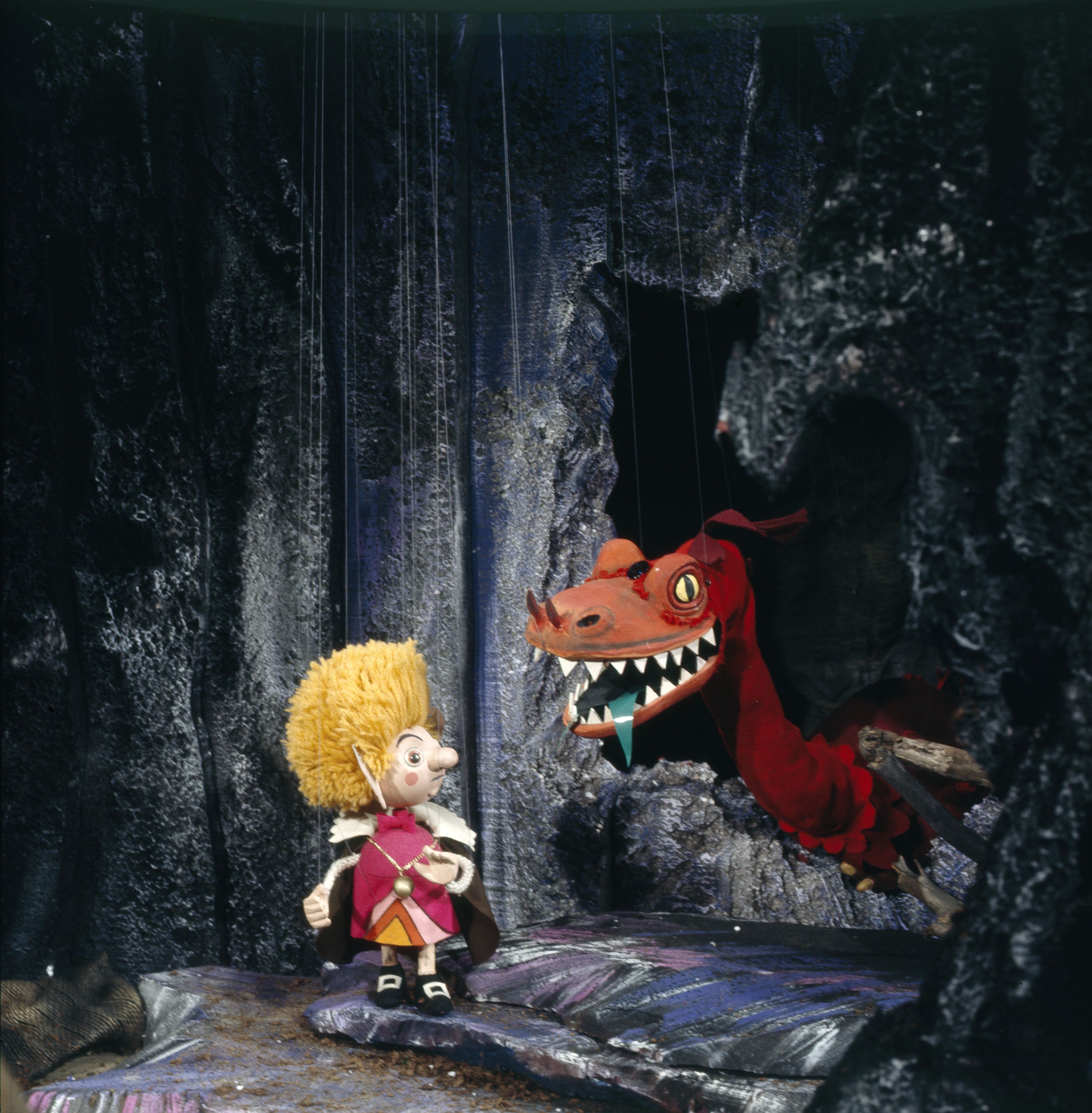 Teilweise ist es auch beeindruckend, was die Augsburger hier optisch aus dem Stoff herausgeholt haben. Vor allem wenn Kalle und die anderen in engen Höhlen unterwegs sind, später einem bösen Drachen begegnen oder auch einen Fluss überqueren, durften sich Manfred Jenning und sein Team kreativ austoben. Aber nicht jede Szene davon überzeugt am Ende: Wenn die beiden Kinder aufgrund einer besonderen Wurzel größer oder kleiner werden, dann sind die Einschränkungen eines Marionettenspiels doch zu groß. An diesen Stellen muss man schon sehr viel nostalgischen Willen mit sich bringen, um aus der spärlichen Szene wahre Magie herauszuquetschen.