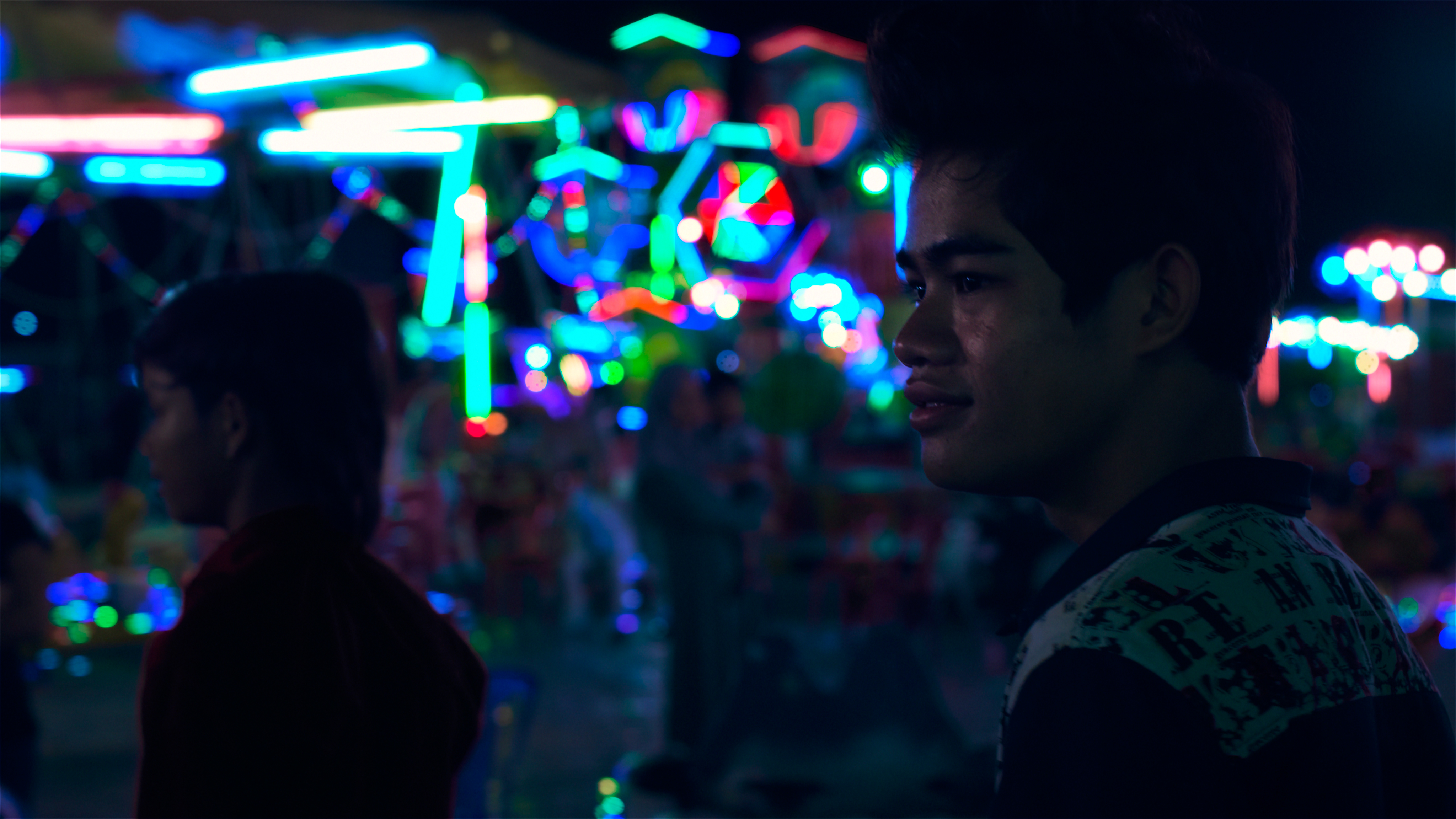 Die Bilder, die Chou dafür verwendet, fangen diese Ambivalenz auch sehr schön ein. Kleine Kunstwerke sind es sogar, die er da auf die Leinwand gezaubert hat, bestimmt durch viele Kontraste: Tag und Nacht, hell und dunkel, neonfarben und betongrau. Dass er zuvor im Dokumentarfilmbereich unterwegs war und hier sein Spielfilmdebüt abgibt, das merkt man Diamond Island dann auch an – im Positiven wie im Negativen. So eindrucksvoll die Aufnahmen auch sind, so kunstvoll komponiert, so sehr scheinen sie losgelöst von den Figuren zu sein.