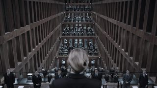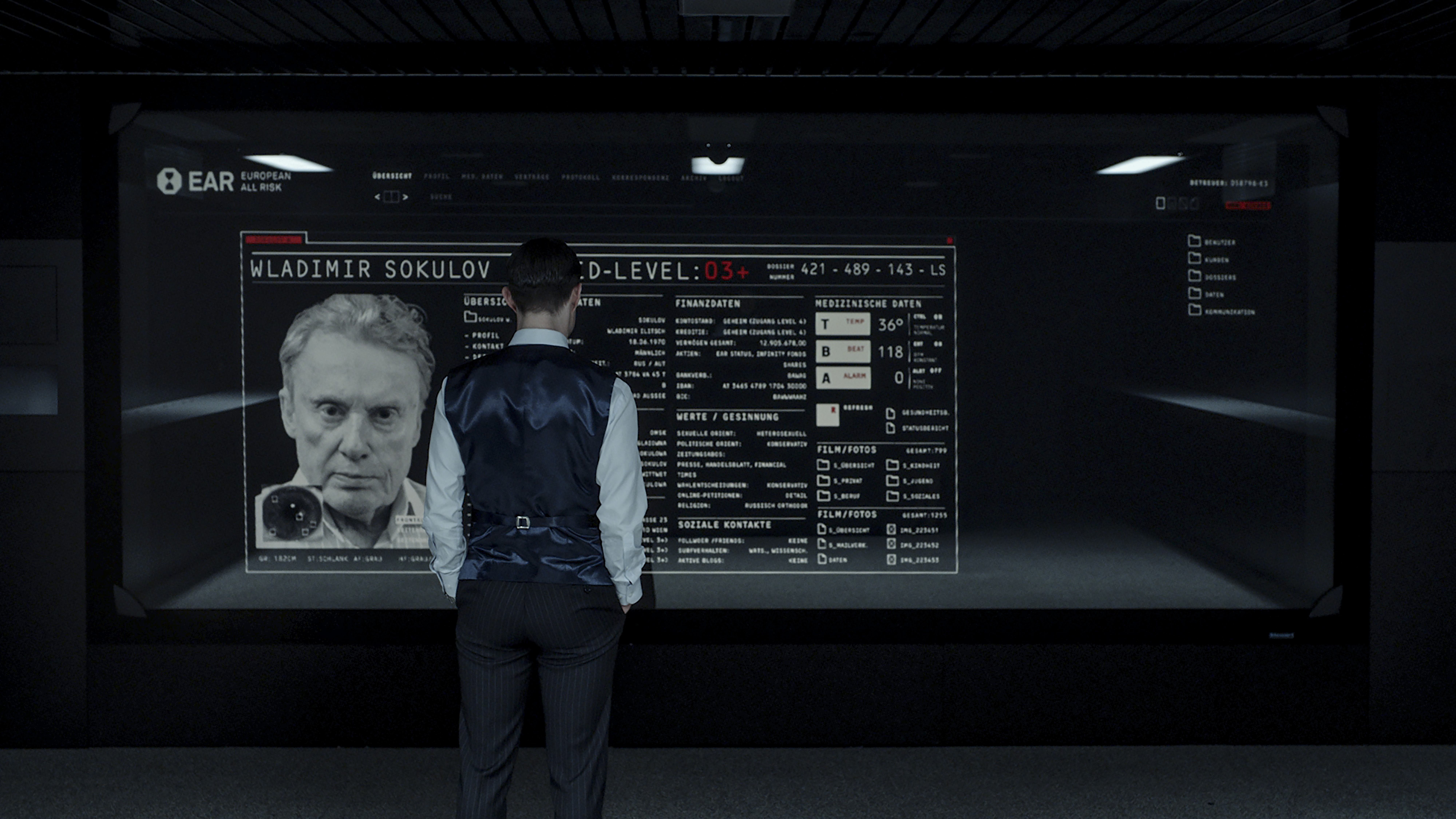 Wobei man hier nur selten sieht, dass der Film aus Österreich stammt. Das liegt zum einen daran, dass mit Ausnahme von der mit dem Österreichischen Filmpreis ausgezeichneten Marion Mitterhammer als Versicherungschefin Diana Dorn die meisten Darsteller doch aus Deutschland kommen. Vor allem aber ist das Land kaum mehr wiederzuerkennen. Nur kurz erblicken wir zwischendurch die traditionellen Gebäude des heimeligen Wiens. Zum Großteil scheint die Stadt aber einer futuristischen Wolkenkratzermetropole gewichen zu sein, grau, kalt und ohne Identität. Das passt visuell natürlich wunderbar zu einer Geschichte, in der jegliches Gefühl und jegliche Individualität ausgemerzt wurden. Wer keine Leistung erbringt, wird sofort aussortiert, Medikamente helfen bei der Selbstoptimierung, die Versicherung, in der Vincent arbeitet, besteht aus sterilen Arbeitsnischen, in denen sich nur selten persönliche Merkmale finden.