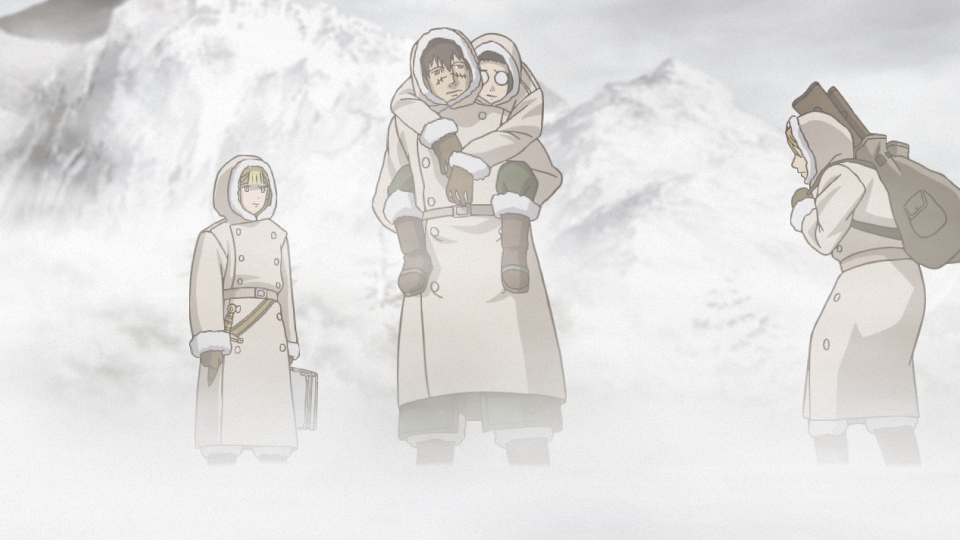 Über eine beachtliche Strecke ist die Serie dann auch eine sehenswerte Alternative zu den sonstigen Anime-Kriegsszenarien geworden. Mit der Zeit werden aber auch die Schwächen immer offensichtlicher. Zum einen gelang es Regisseur Katsuhito Akiyama (Bastard!!, Armitage III: Dual-Matrix) nicht, der Geschichte eine wirkliche Richtung zu geben. Ein roter Faden? Den wird man in den Kriegswirren vergeblich suchen. Vor allem aber konnte man sich bei der Manga-Adaption nicht darauf einigen, welchen Ton man ihr geben wollte. Auf eine wenig überzeugende Weise wird hier zwischen Drama, Action und Comedy hin und her gewechselt. Alles kann, nichts muss. Da wird im einen Moment dafür gekämpft, dass die Menschen nicht verhungern, nur damit im nächsten das offensichtlich prächtig ausgebildete Geschlechtsteil von Oland zum Thema wird.