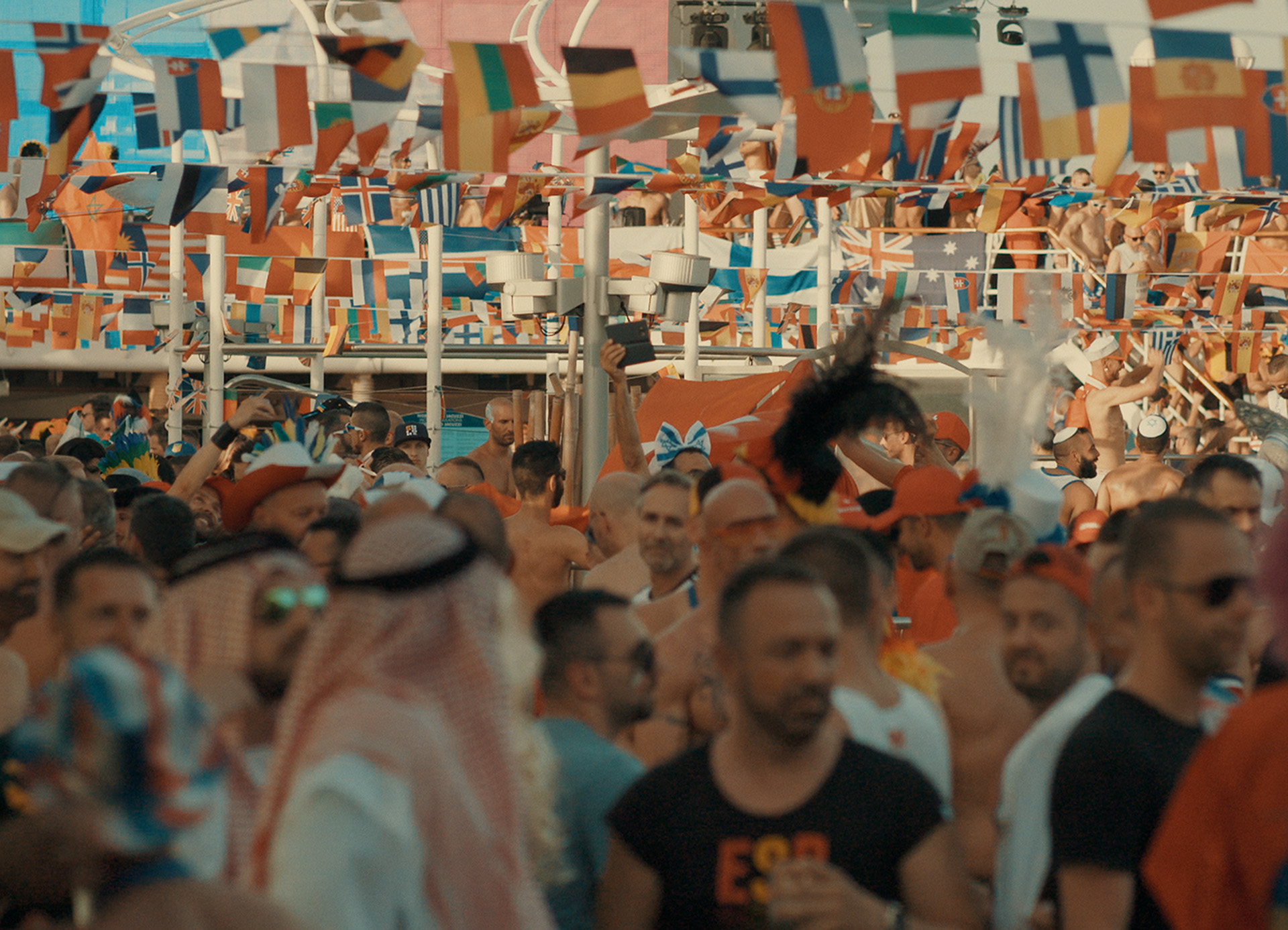 Aids ist eines dieser Themen. Die Möglichkeiten des Schutzes und der Behandlung sind deutlich besser geworden, trotzdem hält sich das Interesse der Schwulen in Grenzen. Wenn es hart auf hart kommt, dann ist dann doch der Sex erst mal wichtiger als alles andere. So zumindest die Aussage. Und es ist eine, der man nach Dream Boat kaum widersprechen möchte. Wenn die Passagiere sich nicht gerade in Frauenfummel werfen oder in grotesken Kostümen über das Deck laufen, dann lautet das Motto: Weniger ist mehr. Knappe Badehosen ist der Standard, manche Gäste zeigen noch ein bisschen mehr. Anderen in den Schritt zu greifen, das ist auf Deck Normalität, ebenso die Frage, mit vielen Leuten man unterwegs bereits geschlafen hat.