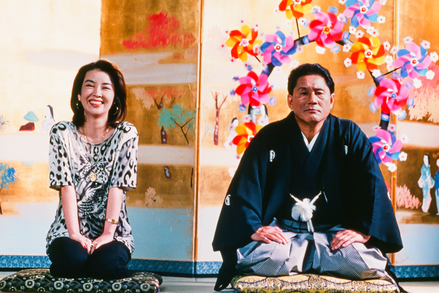 Allgemein verzichtet Kitano auf ausführliche Dialoge oder Beschreibungen. Oft reichen ihm kleine Symbole, die Situationen sprechen hier für sich. Das gilt auch für den Humor, der oftmals auf Slapstick vertraut. Oder auch auf die schiere Absurdität einer Szene. Wenn beispielsweise ein bedrohlich dreinblickender Biker vor dem dominant auftretenden Kikujiro kuscht, ihm nicht mehr als ein „Das ist nicht nett“ über die Lippen kommt, dann unterwandert das so ziemlich jede Erwartung, die man hier so mitbringt.