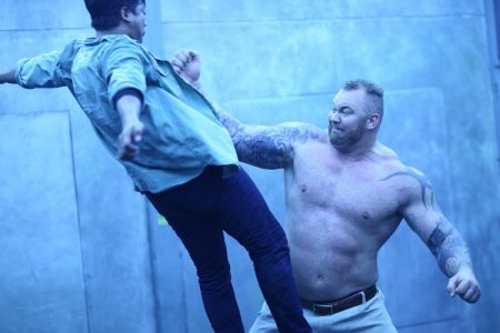 Die wichtigste und größte Rolle, die von Moores Champion Mongkut also, hat allerdings Hafthor Julius Björnsson, Serienfans als Mountain aus Game of Thrones, Strongmanfans als Thor bekannt. Mit zum Drehzeitpunkt vielleicht 185 kg auf 2,05 m ist er schon ein ziemliches Monster und ein formidabler Endgegner in einem Martial-Arts-Film. Die Implementierung von Strongmen in dieses Genre ist ein kluger Schachzug und geht noch einen Schritt weiter als Undisputed IV: Boyka Is Back, in dem mit Martyn Ford ein reiner Muskelberg herhalten musste.