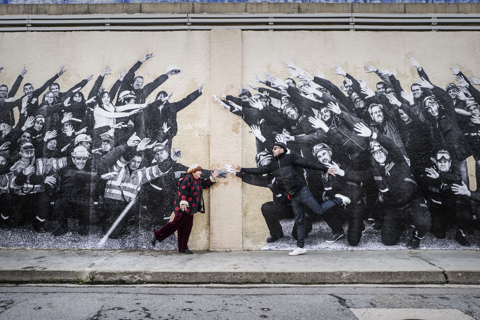 Der Dokumentarfilm lebt dann auch zu einem großen Teil von den Interaktionen dieser beiden, die so unterschiedlich sind und dabei doch eine Vorliebe für das Verspielte eint. Gemeinsam fahren sie durchs Land, lassen sich vom Zufall leiten, treffen Menschen und lassen sich deren Geschichten erzählen. Immer dabei: der Fototruck. Damit lichten sie diese Begegnungen ab bzw. drucken Aufnahmen auf Meter großen Plakaten aus, die sie an Häuser hängen. Oder andere Bauwerke.