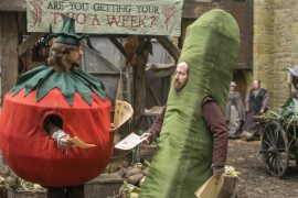 Vor allem richtet er sich aber offensichtlich an ein jüngeres Publikum – kein Wunder, war Horrible Histories doch auch in erster Linie eine Serie für Kinder. Mit allzu hohen Erwartungen sollten hiesige Zuschauer daher nicht an den Film herantreten, trotz der guten Wertungen daheim. Bill – Was für ein Theater! besteht aus anspruchslosen Witzen, etwa wenn der große Dramatiker in der Verkleidung einer Tomate Flyer verteilen muss, um irgendwie über die Runden zu kommen. Dass er diese unwürdigen Arbeiten vor seiner Frau versteckt, versteht sich von selbst. Schließlich soll niemand davon erfahren, dass sein großer Traum nicht in Erfüllung geht.