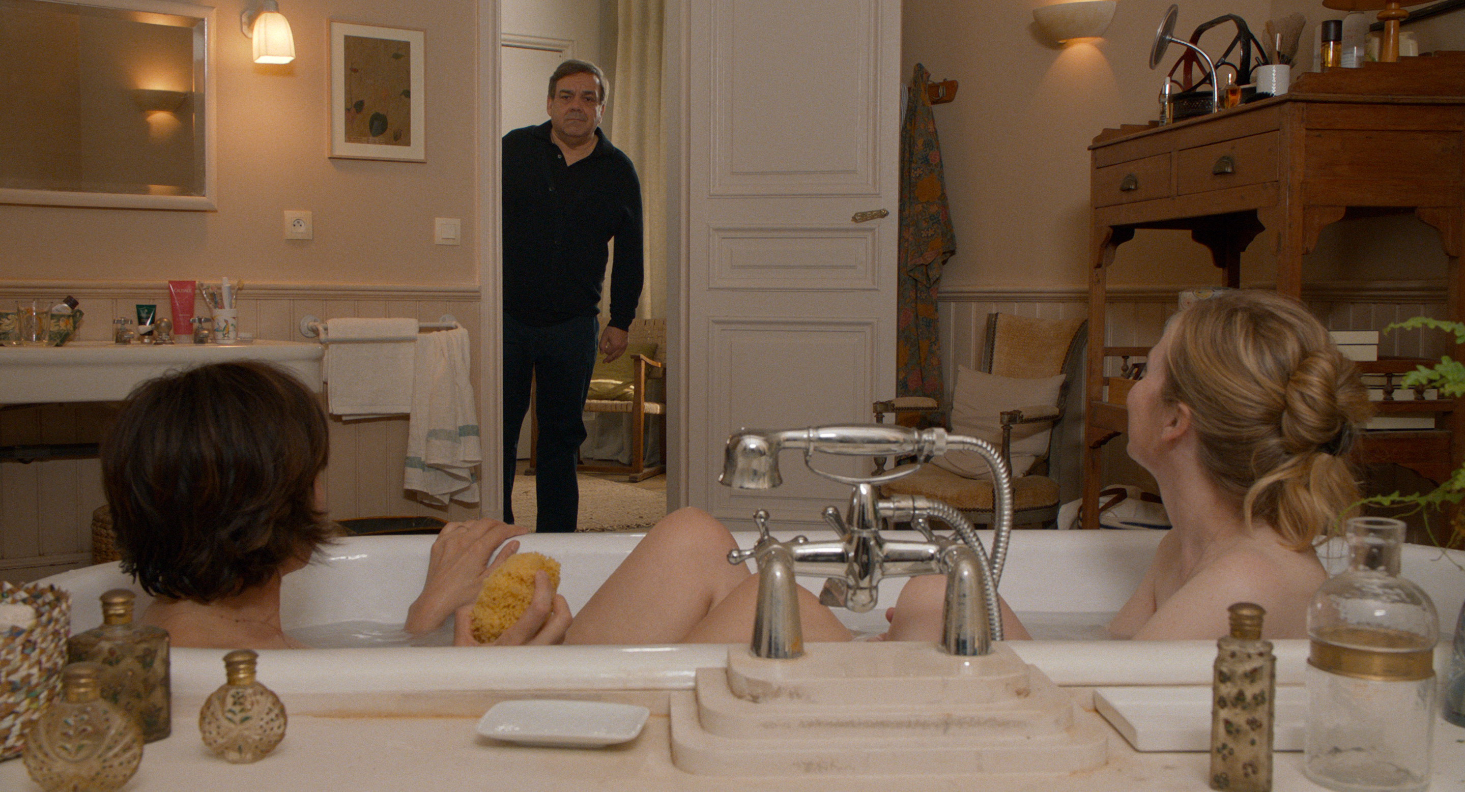 Wirklich anstrengend sind jedoch diverse Nebenfiguren. Obwohl diese durch die gestandenen Darsteller Laurent Stocker und Michel Vuillermoz verkörpert werden – immerhin jeweils Mitglied der Comédie-Française –, bleiben sie Karikaturen, die sehr schnell an den Nerven ziehen, anstatt die Lachmuskeln zu beanspruchen. Ohnehin sind die Witze von sehr unterschiedlicher Qualität. Oft wird es hier derbe, ohne dabei aber komisch zu werden, gerade die diversen schlüpfrigen Momente verfehlen völlig ihr Ziel. Und sind dabei auch noch deutlich zu lang. Erst zum Ende hin zeigt Ménage à trois wieder, was hier möglich gewesen wäre und trägt dazu bei, dass sich der Film immerhin im Mittelfeld ansiedelt.