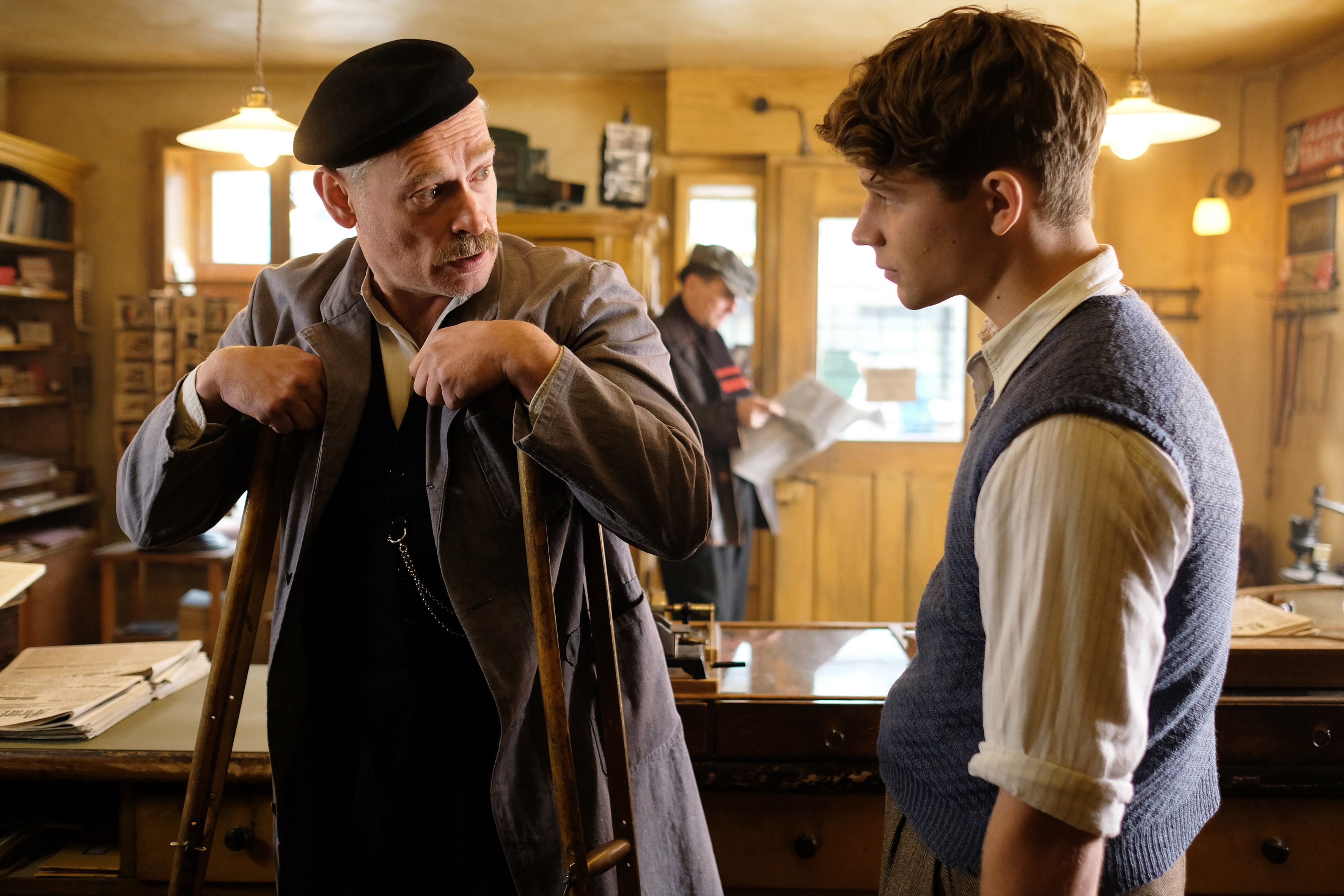 Regisseur und Co-Autor Nikolaus Leytner, sonst eher im TV-Bereich daheim, gelingt es auch ganz schön, diese beiden Seiten in Einklang zu bringen: das Alltägliche und die Ausnahmesituation. Franz bewahrt sich sowohl bei seiner Sehnsucht nach Anezka wie auch beim Umgang mit den Nazis seine jugendliche Naivität, ist oft mehr Kind als Mann. Nur dass für Kinder in Der Trafikant kein Platz ist, kein Platz für Unschuld. Düster geht es schon los, mit dem Tod des Vaters. Und trotz der kleinen schönen Momente, die das Geschehen immer wieder auflockern – der erste Abend mit seiner neuen Flamme geht schnell zu Herzen –, so schwingt doch immer das Unheil mit, schleichen sich Schatten ein, die mit der Zeit zunehmend größer werden und näherkommen.
