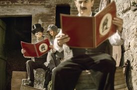 Und doch hat See You Up There etwas sehr Verspieltes an sich, oft auch Komisches. In seiner versponnenen Art ähnelt der Film eher den detailverliebten Sonderbarkeiten eines Jean-Pierre Jeunet (Die fabelhafte Welt der Amélie) als einem herkömmlichen Kriegsdrama. Vor allem die Figur des Édouard vereint die beiden Komponenten, das Tragische und das Komische, wenn er seine inneren Dämonen hinter Masken zu verstecken versucht. Das erinnert manchmal an Das Phantom der Oper. Anstatt sein Inneres jedoch komplett zu begraben, wechselt Édouard seine Masken je nach Stimmung, so wie andere ihre Kleidung an die Situation anpassen.