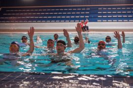 Das Problem einer originellen Idee: Richtig viel Wirkung entfaltet sie nur beim ersten Mal. Wer sie später noch einmal aufgreift, riskiert automatisch, nur als Trittbrettfahrer wahrgenommen zu werden. Als die Schweden erst mit dem Spielfilm Männer im Wasser (2008) und danach mit der Dokumentation Men Who Swim (2010) von einer Gruppe Männer mittleren Alters erzählte, die an Synchronschwimm-Wettbewerben teilnimmt, war das neu. Man mag es nun Zufall nennen, vielleicht auch einfach Pech. Aber dass in kurzer Zeit sowohl die Briten (Swimming with Men) wie auch die Franzosen (Ein Becken voller Männer) das Thema aufgreifen, das droht gerade Letzteren zum Verhängnis zu werden.