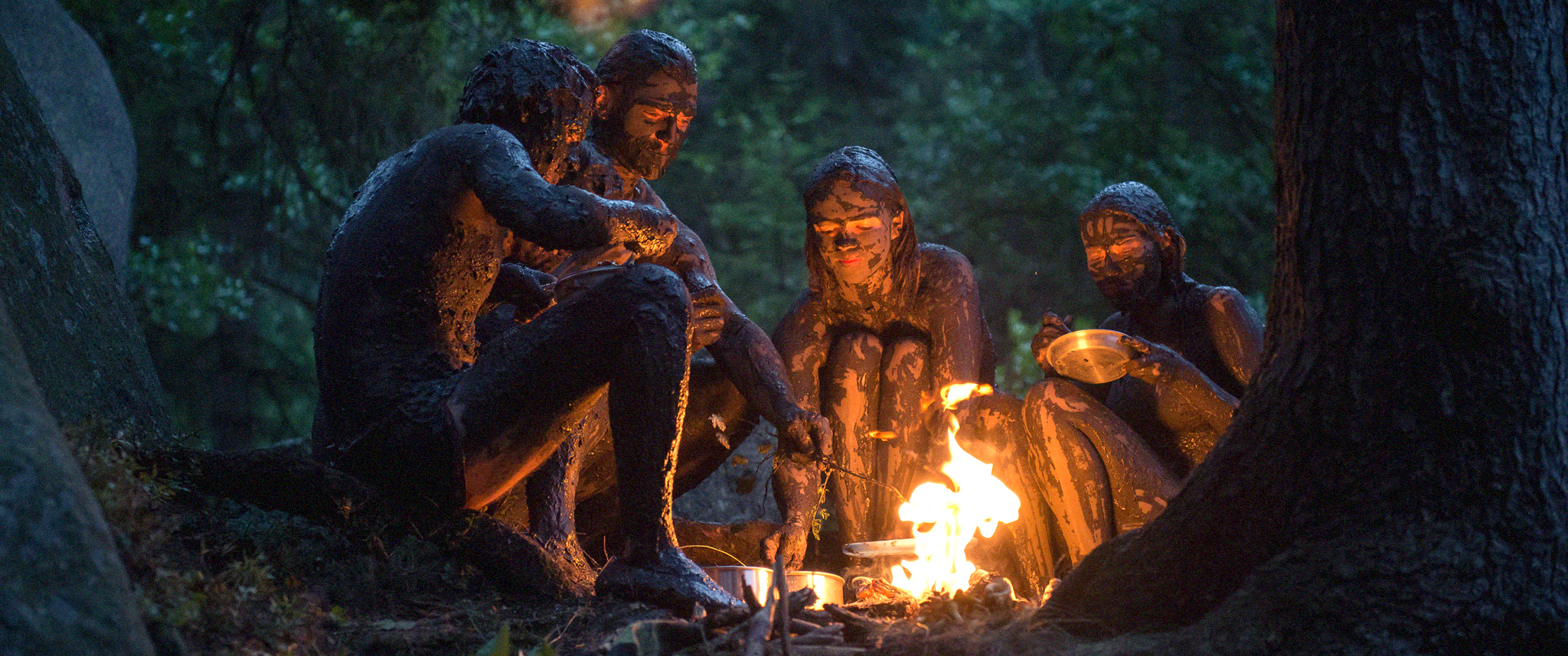 Anstatt diese Sorgen und Fragen weiter aufzudröseln wirkt es im Anschluss aber erst einmal so, als würde sich Hirsch über die Jugendlichen lustig machen wollen, die er zuvor so einfühlsam eingeführt hat. Zurück zur Natur wollen sie und tippen dabei eifrig in ihre Handys. Ihr Orientierungssinn ist ebenso kümmerlich wie ihre Fertigkeit, ein Zelt aufzubauen. Und wenn sie nach Hinweisen suchen, die sie zu der mysteriösen Hütte führen sollen, dann meint man, einer Gruppe von Geocachern zuzuschauen. Ein Aufbruch in eine neue Welt, die mehr einer Schnitzeljagd gleicht, die im Anschluss mit einer fetten Portion Pommes belohnt wird. Denn nach all der Anstrengend hat man sich das ja wohl verdient!