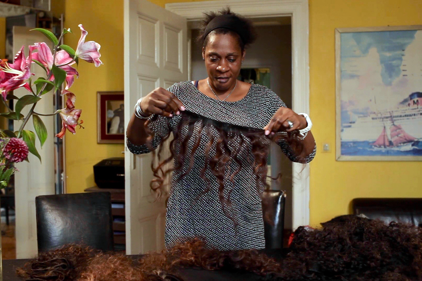 Diese Erfahrung hat auch Lars Barthel gemacht. Seit vielen Jahren schon ist der Filmemacher mit Antoinette verheiratet, einer gebürtigen Jamaikanerin. Die wiederum ist, wie viele ihrer Landsfrauen, sehr unglücklich darüber, was Gott und die Biologie ihr da mitgegeben haben. Zu struppig sind ihre Haare, zu widerspenstig. Also muss eine Alternative her, die pflegeleicht ist und nach etwas aussieht. Dabei spielt es fast keine Rolle für sie, ob der neue Schmuck nun aus Plastik besteht oder echt ist, Hauptsache, er sieht gut aus.
