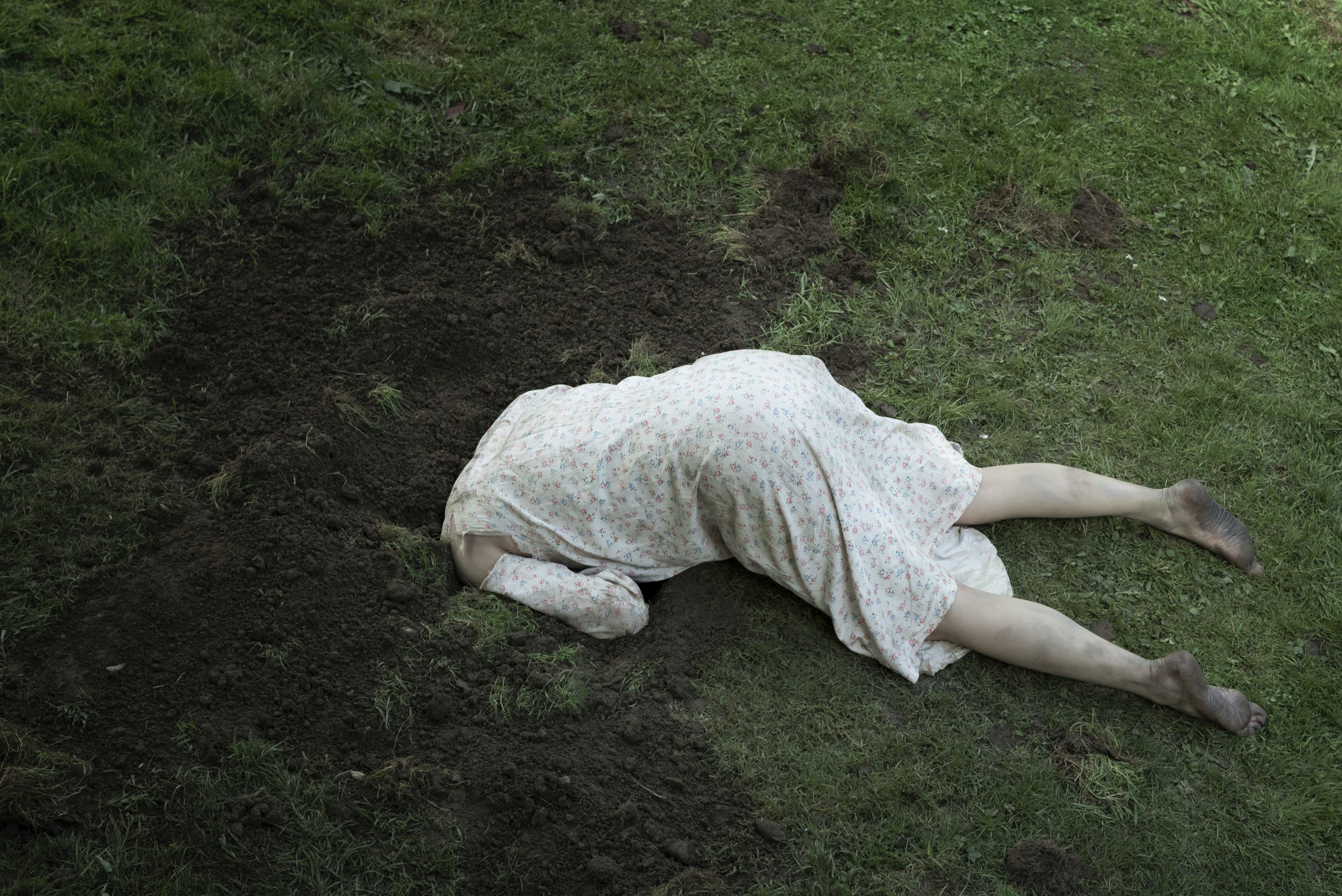 Ein paar Punkte gibt es aber doch, die aus dem Film mehr machen als nur eine Genre-Katalognummer. Zum einen wären da die angesprochenen Bilder, die sich fast ausschließlich aus den unterschiedlichsten Brauntönen zusammensetzen. Eine Farbe also, die eigentlich als warm und natürlich gilt, hier aber in einer blass-finsteren Variante benutzt wird, die dem Setting eine schön unwirkliche Note gibt – gerade auch bei dem im Titel angesprochenen Loch. So als wären wir gar nicht in einem Wald unterwegs, sondern der Traumvariante eines Waldes. Gleichzeitig hat das Szenario aber auch etwas sehr geerdetes, im wahrsten Sinne des Wortes, wenn der Dreck tatsächlich noch zu spüren ist, als würden wir uns durch die Zeit graben.