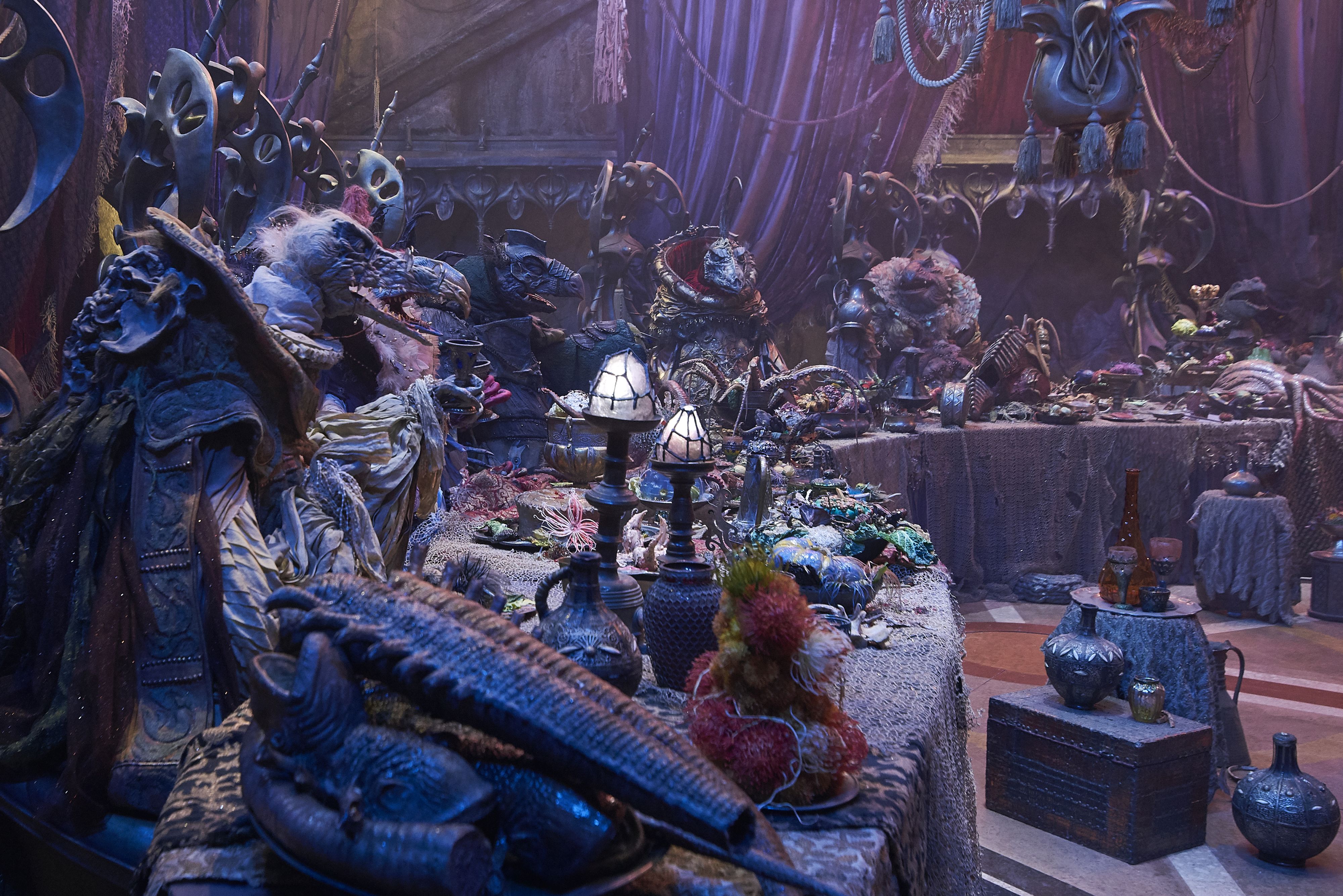 Untrennbar damit verbunden ist die erneut umwerfende Optik. Natürlich sind die Möglichkeiten heutzutage ganz andere als noch Anfang der 1980er, weshalb ein Vergleich der beiden Visionen zwangsweise hinkt. Leterrier und seinem Team gelingt es aber, heutige Technik so einzusetzen, dass sie den klassischen Puppenzauber verstärkt, anstatt diesen zu ersetzen. So gewannen die Figuren deutlich mehr Bewegungsfreiraum, sei es durch die fortgeschrittene Elektronik oder den Einsatz von Green Screens. Das und die Computereffekte fallen durchaus etwas auf, werden aber selten zu einem Problem. Dafür überwiegen die handgemachten Elemente zu sehr, sind auch zu ausdrucksstark. Wessen Herz noch für eine traditionelle Ausstattung schlägt, in der reale Gegenstände herumliegen, anstatt CGI-Projektionen zu sein, für den ist das hier ein absolutes Fest. Das Ausmaß an Detailfreudigkeit verbunden mit einem Sinn fürs Fantastische ist atemberaubend, im Gegensatz zu vielen Netflix-Produktionen merkt man hier deutlich, dass das wirklich aus persönlicher Leidenschaft geboren wurde.