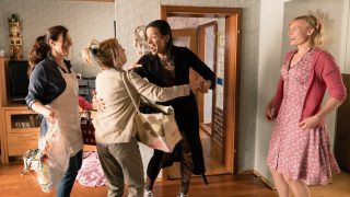 Der erste Punkt ist geblieben. Denn auch wenn die Männer diesmal tatsächlich selbst anpacken wollen, allen voran Lenas Freund Willi (Matthias Ransberger), ohne das Powertrio geht dann doch nichts. Das kann man sympathisch finden. Die gleiche Wirkung kann man beim zweiten Einsatz jedoch kaum erwarten. Die Abnützungserscheinungen sind aber das deutlich geringere Problem, wenn drumherum nur Misere herrscht. Schon die Prämisse, dass allein das fehlende High-Speed-Internet Schuld daran sein soll, dass es dem Dorf schlecht geht, wird nie erklärt. Die Idee des Trios, durch Teilnahme an einem Tanzwettbewerb alles zu richten, ist genauso an den Haaren herbeigezogen – vor allem wenn die einzige halbwegs plausible Idee, die der Männer, komplett ignoriert wird. Und so häuft Eine ganz heiße Nummer 2.0 ein Thema nach dem anderen an, versucht lauter konkurrierende Parallelhandlungen, die sich aber nie zu einer in sich stimmigen Geschichte zusammenfügen.