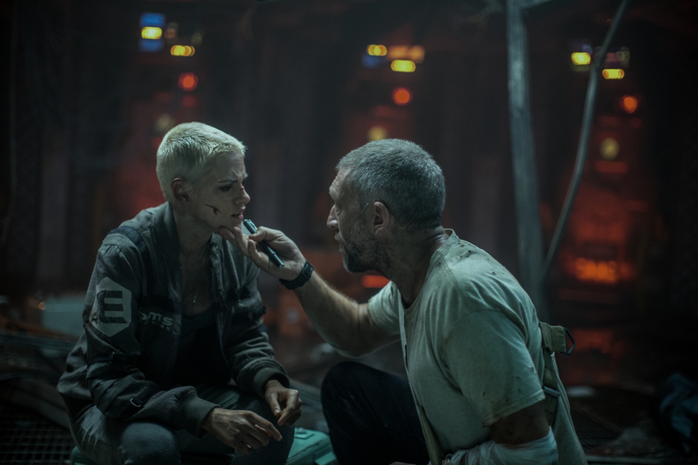 Wobei der Vergleich dennoch hinkt. Wo Ridley Scott seinerzeit noch sehr viel Zeit investierte, um die Figuren und ihre Situation vorzustellen, da hat es Eubank ausgesprochen eilig. Underwater beginnt gleich mit der Katastrophe, vielen Explosionen und akuter Lebensgefahr. Und auch wenn es im Anschluss ruhiger wird, der Unterwasser-Terror setzt in erster Linie auf Lautstärke und Tempo. Wirkliche Verschnaufpausen sind selten, der Überlebenskampf ist mehr oder weniger einer anderthalbstündiger Dauersprint. Auf Dauer ist das natürlich ermüdend, da wenig wirklich von Bedeutung ist. Findet alles auf einem Level statt, dann bedeutet das im Umkehrschluss meistens, dass es keine Höhepunkte gibt.