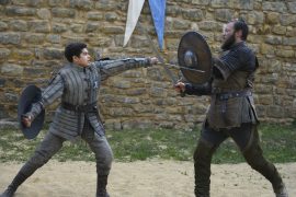 Ansonsten ist die Serie optisch recht durchwachsen. Es gibt die übliche Abfolge von Wäldern und düsteren Verliesen sowie eine sichtliche Vorliebe für Dunkelheit – das schafft schließlich Atmosphäre und man muss nicht wirklich viel im Hintergrund machen. Sieht ja eh keiner. Bei den Kämpfen orientierte man sich an den einschlägigen Pseudo-Mittelalter-Vorbildern. Große Schlachten gibt es hier nicht, von einem Krieg wird zwar gesprochen, gezeigt wird er nicht. Aber selbst bei den Mann-zu-Mann-Kämpfen sollte man keine großen Erwartungen haben, die jungen Protagonisten und Protagonistinnen haben schlicht nicht die notwendige Erfahrung mit den Schwertern oder anderen Waffen. Es fehlt in Der Brief für den König an der nötigen Wucht.