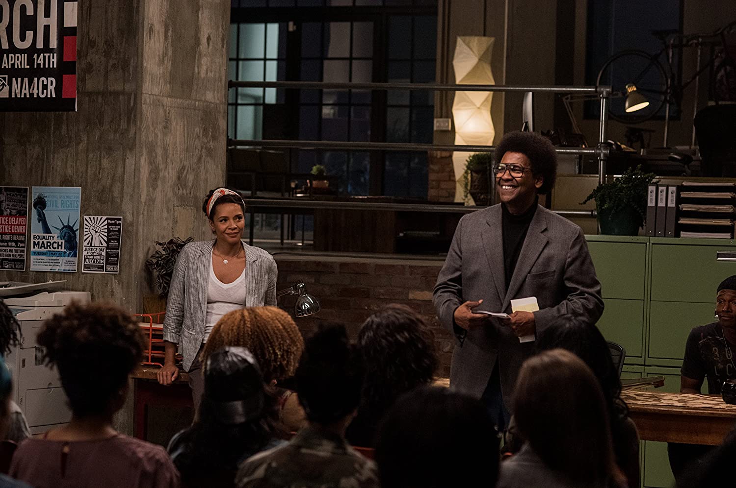 Gilroy hat mit seinem Titelhelden eine sicherlich faszinierende Figur erschaffen. Einerseits ist Israel nah an den Menschen und ihren Geschichten dran. Andererseits findet er keinen rechten Zugang zu ihnen, weiß nicht, wie er sich in der Gesellschaft anderer zu verhalten hat, wirkt auch sonst wie ein Fremdkörper in dieser Welt. Auf den ersten Blick meint man, dass der Film in den 1970ern spielt, basierend auf der Kleidung des Mannes, seiner Frisur. Auch Handys lassen sich erst finden, sobald man den Blick schweifen lässt und die anderen Leute beobachtet, wobei Roman J. Israel, Esq. über die nicht sonderlich viel zu sagen hat. Sie sind, von Kontrastmittel Pierce einmal abgesehen, so unwichtig, dass man im Anschluss nicht einmal sicher ist, ob man überhaupt jemanden gesehen hat.