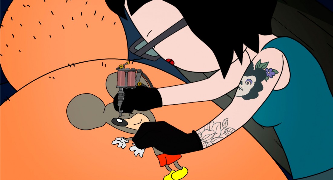Dass man auch in Argentinien humoristischen ein klein wenig anders unterwegs ist, das beweist Lava. Optisch macht das Ganze recht wenig her. Die simpel gezeichneten Figuren sind weder technisch noch vom Design her Hingucker, die Hintergründe sind genauso spartanisch. Eigentlich ist der Film so billig, dass man ihn sich nicht einmal als Fernsehserie unbedingt angeschaut hätte und man ihn zunächst nicht viel Interesse entgegenbringt. Glücklicherweise trügt der erste Eindruck aber. Denn was dem Werk an visueller Finesse fehlt, das macht es durch einen umso größeren What-the-Fuck-Faktor wieder wett. Schon der Einstieg, wenn von Tätowierungen die Rede ist, gestaltet sich ein wenig seltsam. Später verzichtet man komplett auf Faktoren wie Sinnhaftigkeit.