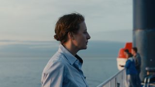 Und das ist nicht der einzige fliegende Wechsel, den es hier zu bewundern gibt. Das Drama, das beim Locarno Film Festival 2019 Weltpremiere hatte, hat beispielsweise zwar drei offizielle Hauptfiguren – Dara, Lucek und Birte –, platziert diese jedoch in einem in einem größeren Personenkreis. Viele dieser Begegnungen sind flüchtig, etwa auf der Fähre. Sie finden nicht einmal zwangsläufig auf einer direkten Ebene an, wenn Dara das Tagebuch einer ehemaligen Bibliothekarin liest, welche in einem der abzureißenden Gebäude wohnte. Auch das trägt dazu bei, dass gestern, heute und morgen in einem ständigen Austausch sind, Spuren der Vergangenheit auf Schritt und Tritt entdeckt werden. Das gibt Giraffe auch oft eine leicht wehmütige Note, ausgelöst durch das Gefühl von Vergänglichkeit und Verlust. Durch das Wissen, dass nichts von Bestand sein wird, nicht die Gebäude, nicht die Romanze zwischen Dara und Luce, selbst die Fähre wird zu einem Symbol einer vergangenen Welt.