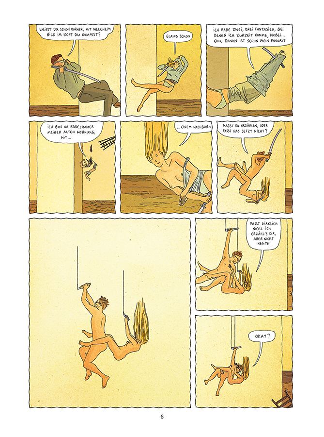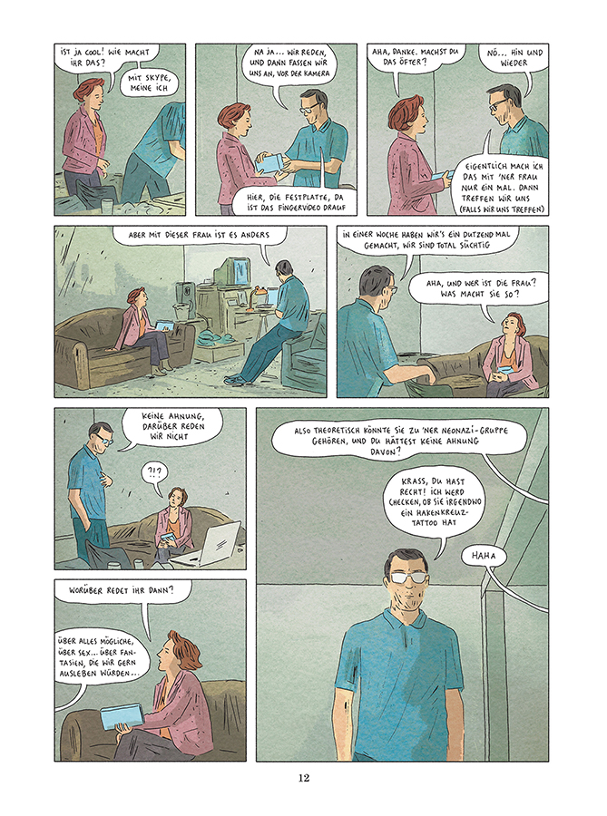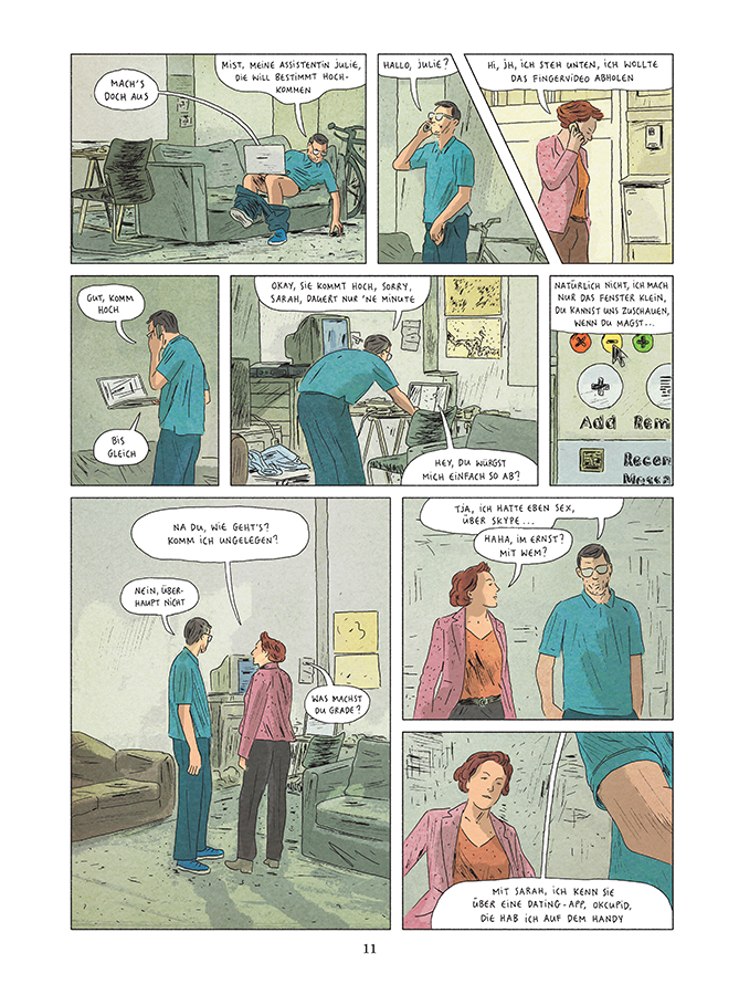 Die Idee der virtuellen Welt als einer Parallelwelt oder gar einer bevorzugten Alternative zu der echten ist wahrlich nicht neu. Auch in Rupperts und Melots Geschichte ist die virtuelle Welt ein klarer Gegenentwurf zu der Wirklichkeit, die sich durch ihre Restriktionen und Regeln definiert, die der Wunscherfüllung im Wege stehen. In dem Moment, in dem man JH begegnet als Leser, ist dieser gefangen in dieser Welt und will sich nicht mehr von ihr lösen, kann sie ihm doch echt Lust verschaffen in einer Wirklichkeit, die dies nicht mehr ermöglicht. Sein eigener Terminplan, der von Deadlines und Verpflichtungen erfüllt ist, steht im klaren Gegensatz zu der virtuellen Zeit, die anders ist und wahrgenommen wird. Passenderweise fragt ihn sein Cutter verwundert, warum JH auf einmal so lange braucht, um in seine Wohnung zu kommen, ohne zu wissen, dass dieser noch bis eben sich in Sarahs Profil auf OkCupid hineinsteigerte.