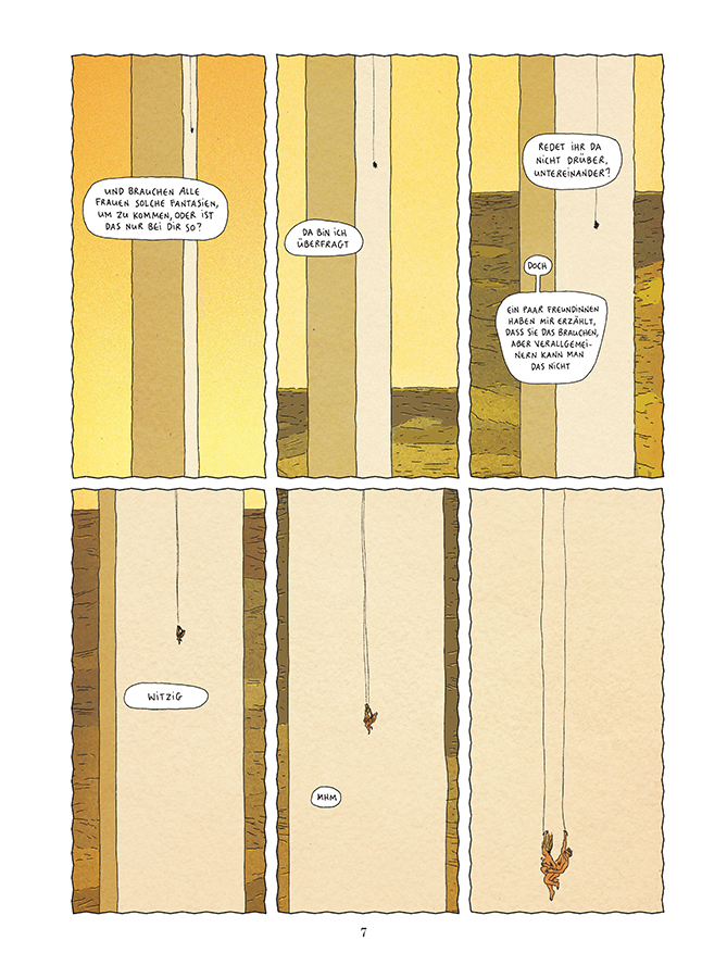 Für diese komplexen Gedanken bemühen Ruppert und Melot verschiedene Bilder, welche den Absturz der Figuren in ihr eigenes Verlangen zeigen. Ein schier nicht enden wollender Sturz in die Leere wird ein Moment der Losgelöstheit, der absoluten Lust und ein Vergessen der Welt außerhalb des Monitors oder des Handybildschirms. Beide Welten gehen ineinander über, zeigen das wachsende Verlangen von JH nach dem Körper des anderen Menschen und letztlich nach irgendeinem weiblichen Körper. Der Satz „Wir stürzen ab“, gemeint als Zusammenfassung jenes Zustands während des virtuellen Sex, wird zu einer umfassenderen Metapher für jenen Absturz, der sich dann in der echten Welt vollzieht.