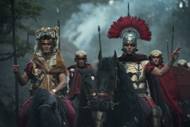 Letztere ist wuchtig und blutig genug, damit Fans solcher Hochglanz-Schlammschlachten auf ihre Kosten kommen, auch wenn das Ganze eher kurz ausfällt. Ein paar aufgespießte Köpfe gibt es obendrein. In Erinnerung bleiben darüber hinaus vor allem die historischen Rüstungen bzw. die Kriegsaccessoires der Germanen sowie der Umgang mit Sprache. Während die Römer tatsächlich in Latein sprechen, gibt es bei den Germanen modernes Hochdeutsch, was sich etwas nach Straßengang anhört und ein wenig die Illusion raubt, tatsächlich im Jahr 9 nach Christus unterwegs zu sein. Aber um historische Aufklärung geht es in der Serie ja eh nicht. Barbaren bietet unterhaltsame, oberflächliche Unterhaltung, mit der man sich gut einen grauen Sonntag vertreiben kann, die aber zu austauschbar ist, zum Ende unfreiwillig komischen Pathos bietet und der Geschichte nicht so ganz gerecht wird.