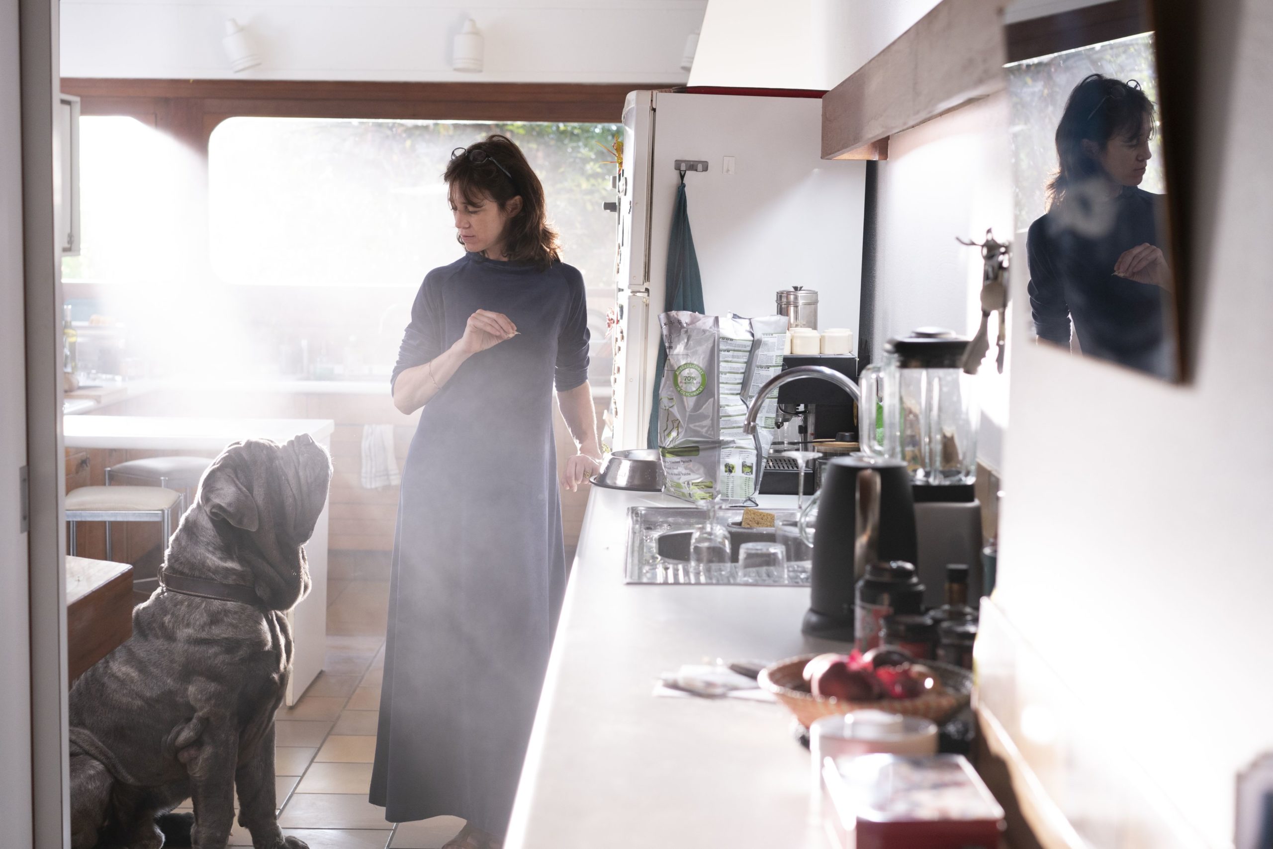 Daraus lässt sich nur bedingt etwas für die reale Welt ableiten. Am ehesten kommt dafür noch die Geschichte von Cécile in Frage, die selbst einmal schreibende Ambitionen verfolgte, diese aber zugunsten der Familie aufgab – und deshalb ebenso viel Frust in sich trägt wie ihr Mann. Das ist schon unterhaltsam, eben weil sich Attal und Gainsbourg nicht zurücknehmen. Und auch das Monstervieh ist für ein paar Lacher gut, selbst wenn die homophoben Sprüche ziemlich daneben sind. Für einen ganzen Film ist es aber irgendwie nicht so wirklich viel Stoff, eine Entwicklung der Figuren findet nicht statt. Wären da nicht die Kinder, die nach und nach ausziehen, würde man keinen chronologischen Fortgang sehen. Der Hund bleibt erzählt nicht nur von einem Mann, der im Status Quo verfangen ist. Dem Film geht es nicht anders.