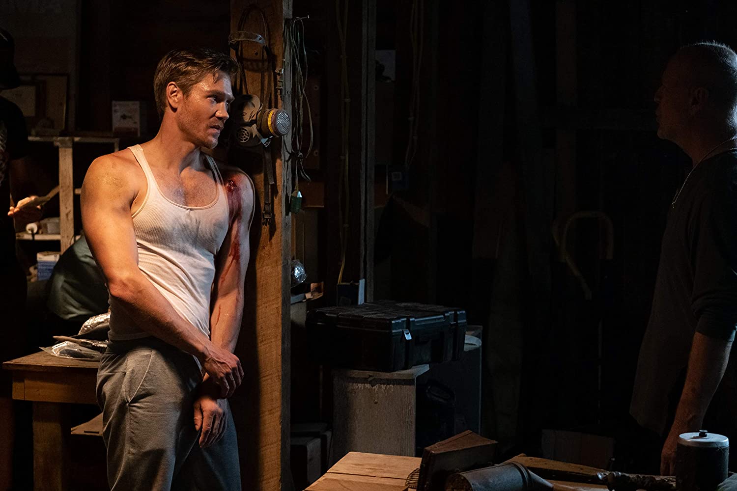 Daraus hätte man natürlich einen Film über toxische Männlichkeit machen können, das gestörte Verhältnis zwischen Vater und Sohn – Letzterer ist nach einer Reihe von Vorfällen im Krankenhaus als Verlierer gebrandmarkt – hätte das auf jeden Fall hergegeben. So richtig Lust hatte Drehbuchautor Doug Wolfe, der hier das erste Mal in Erscheinung tritt, aber nicht. Zwar entwirft er in Survive the Night das Bild einer entfremdeten Familie, in der kaum einer mehr mit dem anderen kann. An der Stelle enden aber auch schon seine künstlerischen Ambitionen. Über die meisten Familienmitglieder erfährt man nichts, gleiches gilt für die beiden Verbrecher. Die wohlwollend ausgedrückt schlichten Dialoge geben das einfach nicht her.