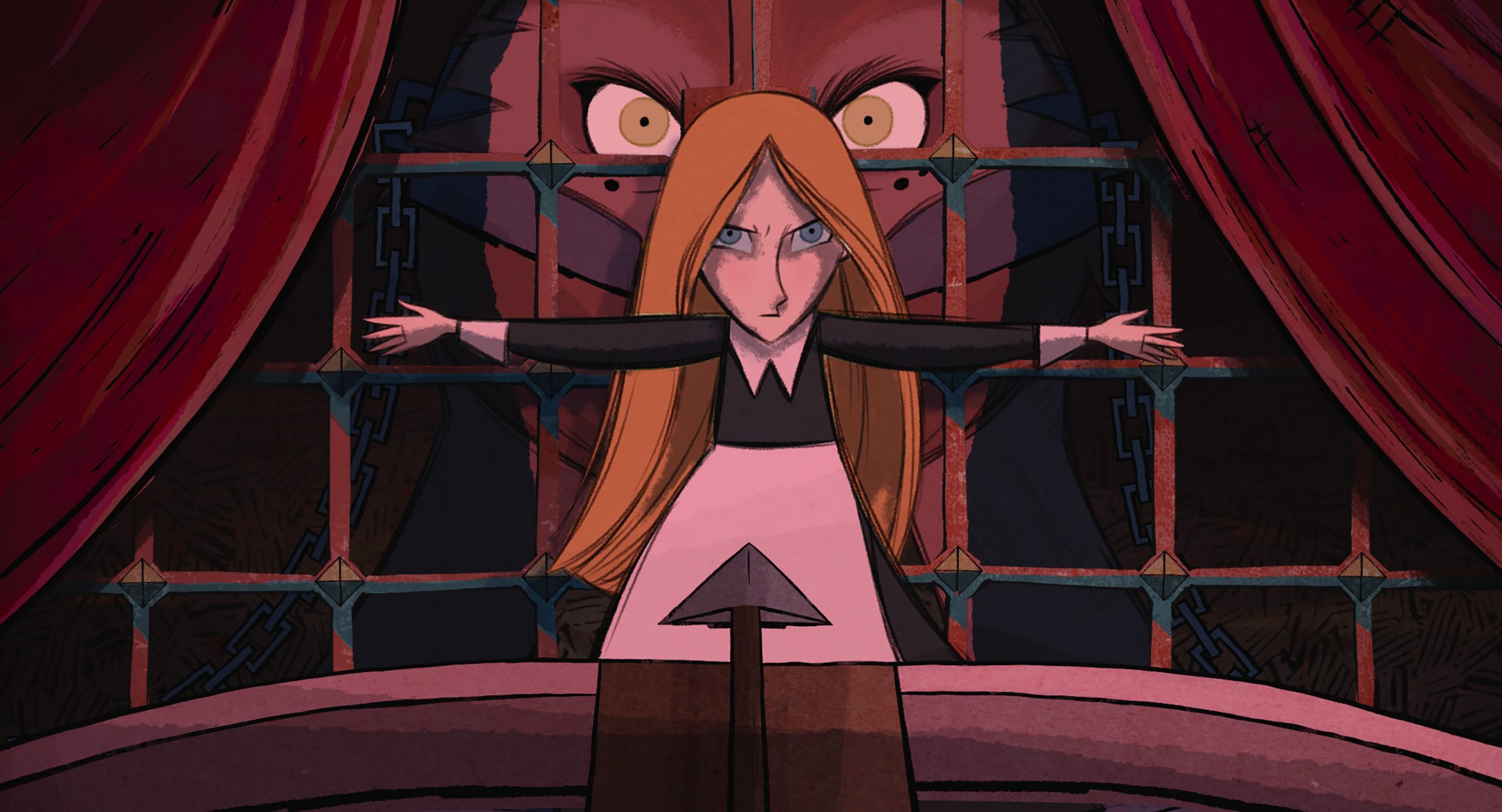 Wie immer setzt das zuständige Animationsstudio Cartoon Saloon gemeinsam mit dem Produktionspartner Mélusine auf handgezeichnete Bilder. Die haben jedoch weniger den Look klassischer Zeichentrickfilme, sondern sehen aus wie eine Mischung aus Drucktechniken von anno dazumal und Wasserfarbenmalereien. Das Ergebnis sind sehr blockige, mit dicken Strichen gefertigte Zeichnungen vor oft starren, simplen Hintergründen. Gleichzeitig ist Wolfwalkers aber voller Leben, ein Fest der Farben, vor allem wenn wir in die Perspektive der Wolfmenschen wechseln, bei der sich bunte Gerüche durch die Luft schlängeln. Allgemein ist das alles hier sehr verspielt, ein Werk, das aus purer Lust am Kreativen entstanden ist, nicht durch den Versuch, eine konforme Realität abzubilden.