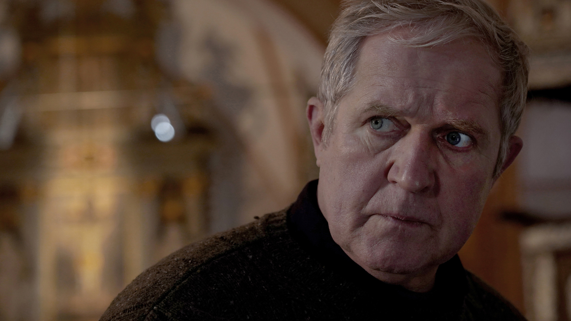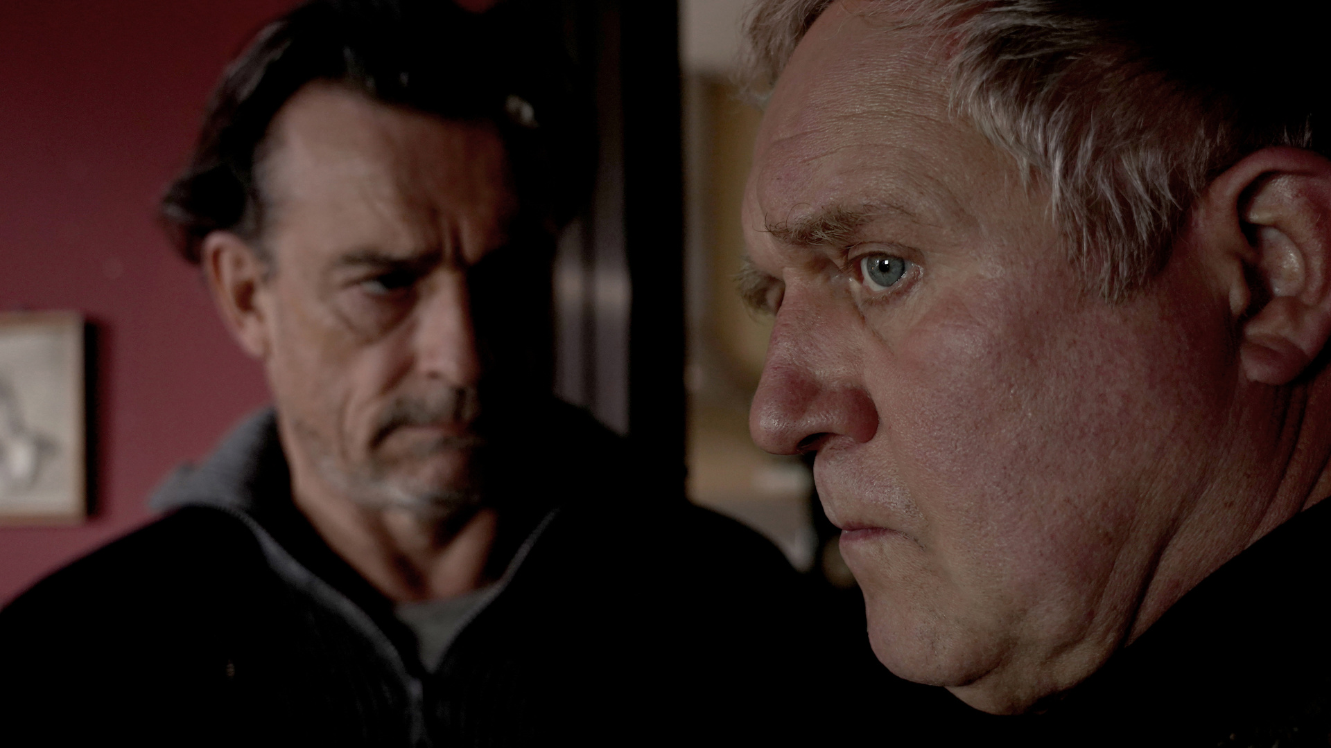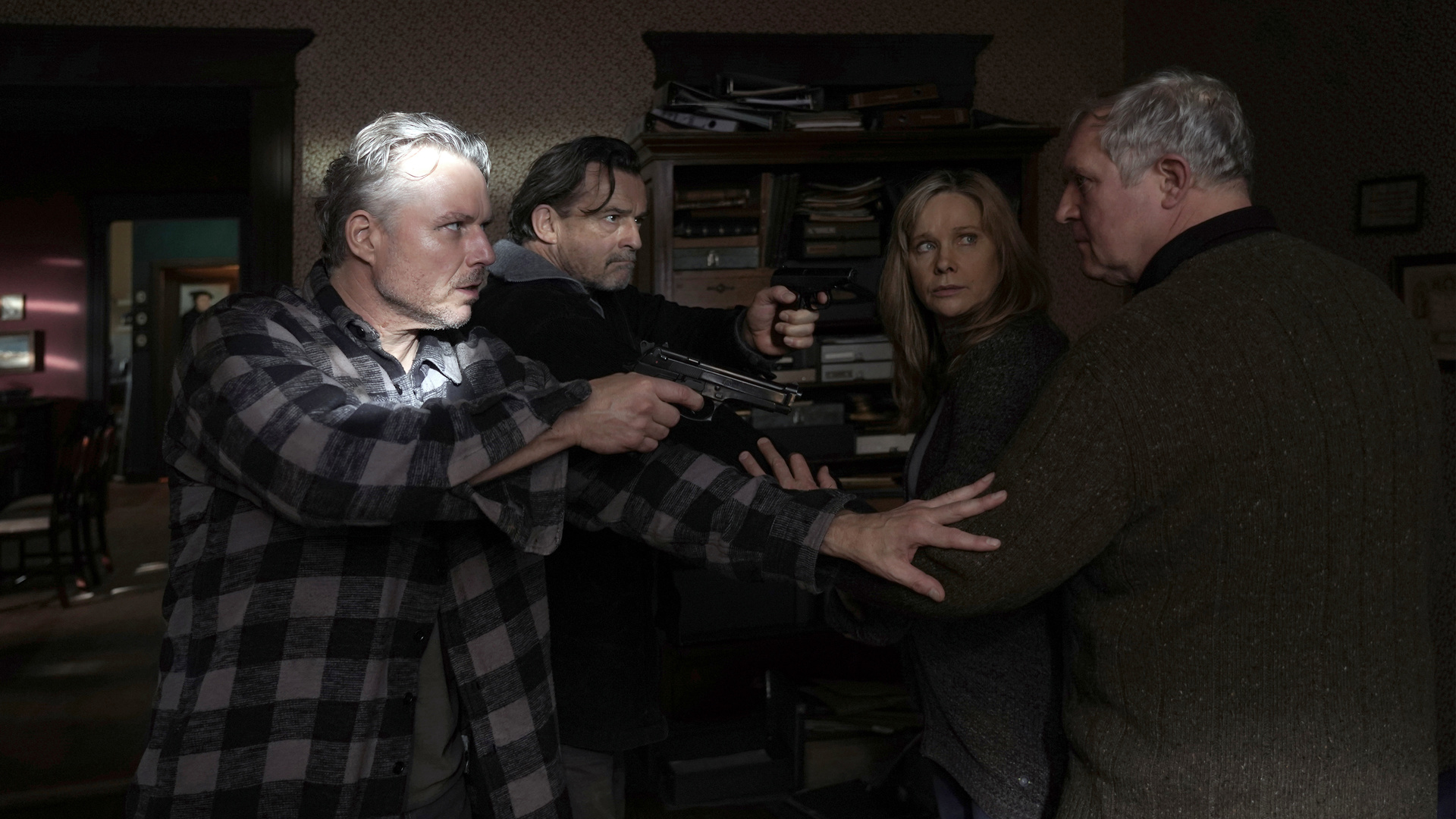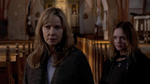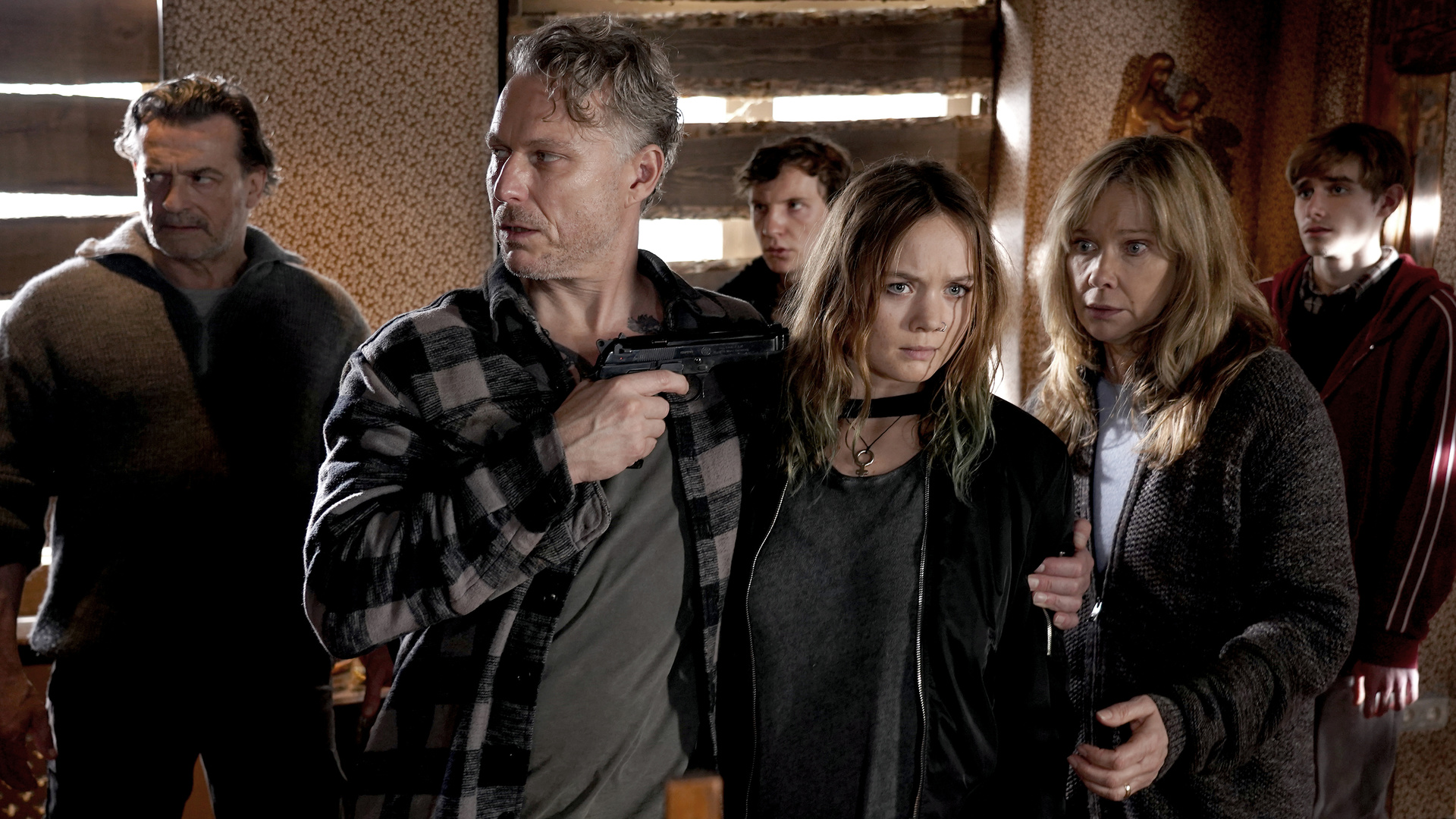 Wobei auch der Thriller selbst unterhaltsam ist. Das liegt jedoch weniger an der Geschichte an sich. Gangster, die auf der Suche nach einer Beute sind, das ist jetzt nicht die hohe Kreativitätskunst. Dass der Schauplatz von Tödliche Gier ausgerechnet eine Kirche ist, sticht dabei natürlich schon hervor, ist für die Handlung aber mehr oder weniger irrelevant. Das hätte man auch austauschen können, ohne dass es viel ändert. Gleiches gilt für das dörfliche Setting. Das führt zwar zu weiteren Konflikten, wenn die Bahnerts nicht wirklich ankommen, und trägt somit zur angespannten Atmosphäre bei. Der Ablauf der Geiselnahme hätte aber auch anderweitig funktioniert.