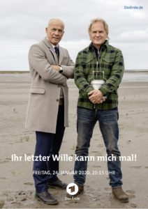 Bei Ihr letzter Wille kann mich mal! dachte man sich: Warum nicht einfach beides miteinander kombinieren? Und so kramte Drehbuchautorin Maike Rasch (Bonnie & Bonnie) einfach zwei Herren aus der Klischeekiste und schickte sie gemeinsam auf Reise. Die Idee ist dabei natürlich schon naheliegend. Das bedeutet aber nicht, dass sie gut oder wenigstens ausreichend ist. Da braucht es schon noch ein bisschen mehr Stoff, um daraus einen Spielfilm zu machen, der es auf die von der ARD geforderten 90 Minuten bringt. Zu dem Zweck wird dann noch eine dritte Figur eingebaut, die mit der Geschichte eigentlich gar nichts zu tun hat, aber wohl ebenfalls als Kontrastmittel intendiert war. Denn was ist das Gegenteil von zwei älteren Männern? Eine jüngere Frau.