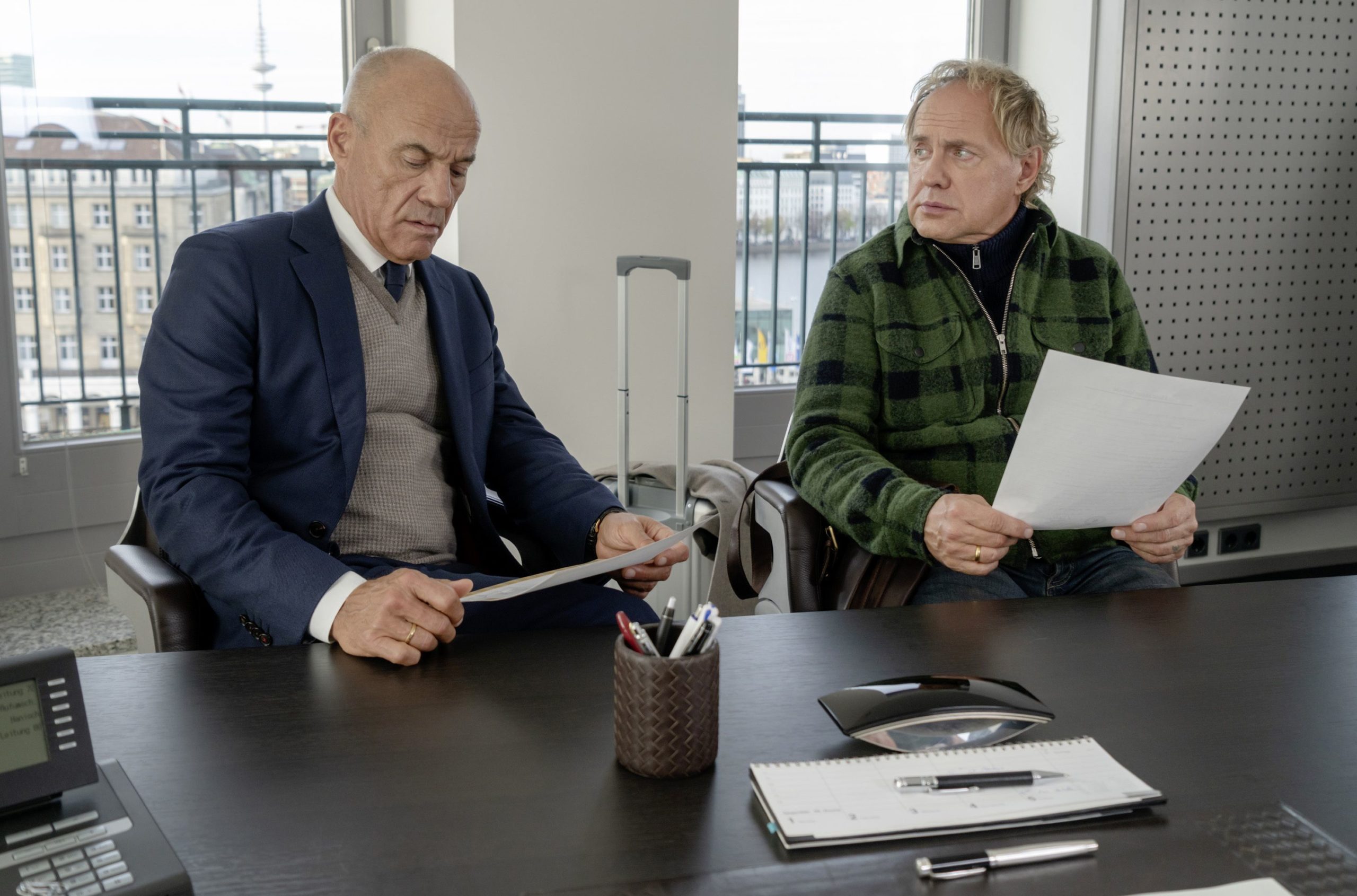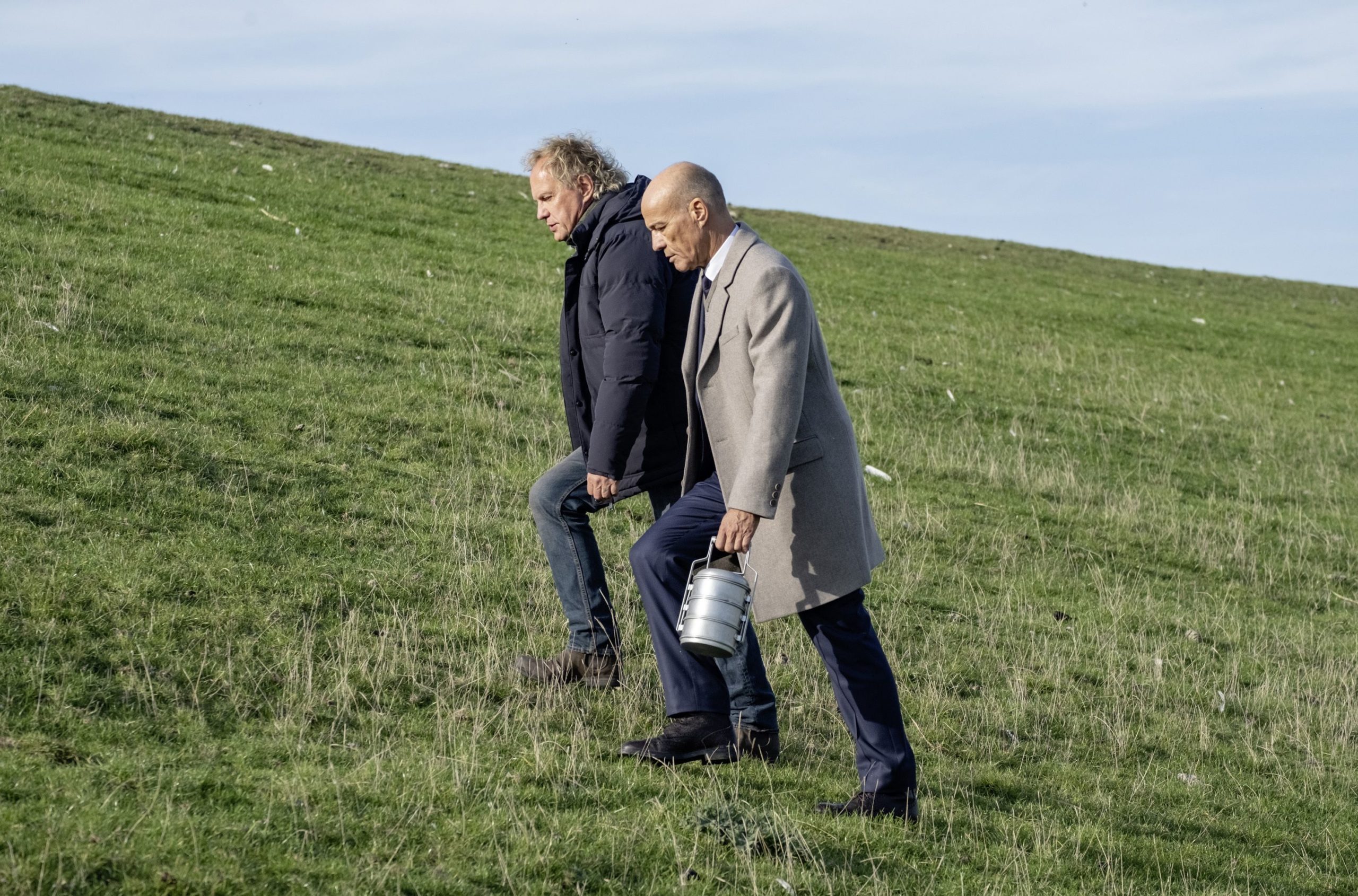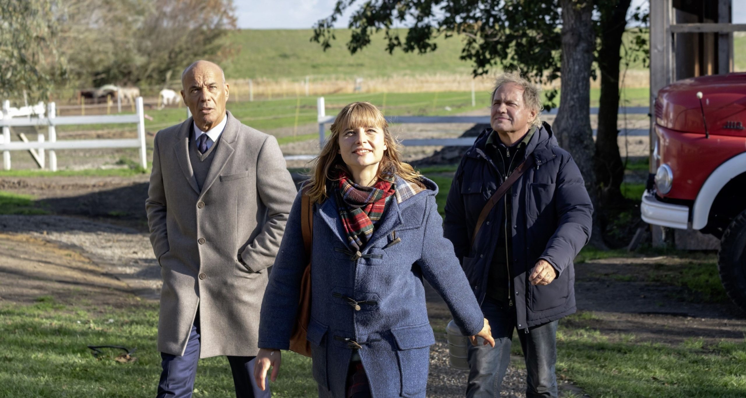 Bei Ihr letzter Wille kann mich mal! dachte man sich: Warum nicht einfach beides miteinander kombinieren? Und so kramte Drehbuchautorin Maike Rasch (Bonnie & Bonnie) einfach zwei Herren aus der Klischeekiste und schickte sie gemeinsam auf Reise. Die Idee ist dabei natürlich schon naheliegend. Das bedeutet aber nicht, dass sie gut oder wenigstens ausreichend ist. Da braucht es schon noch ein bisschen mehr Stoff, um daraus einen Spielfilm zu machen, der es auf die von der ARD geforderten 90 Minuten bringt. Zu dem Zweck wird dann noch eine dritte Figur eingebaut, die mit der Geschichte eigentlich gar nichts zu tun hat, aber wohl ebenfalls als Kontrastmittel intendiert war. Denn was ist das Gegenteil von zwei älteren Männern? Eine jüngere Frau.