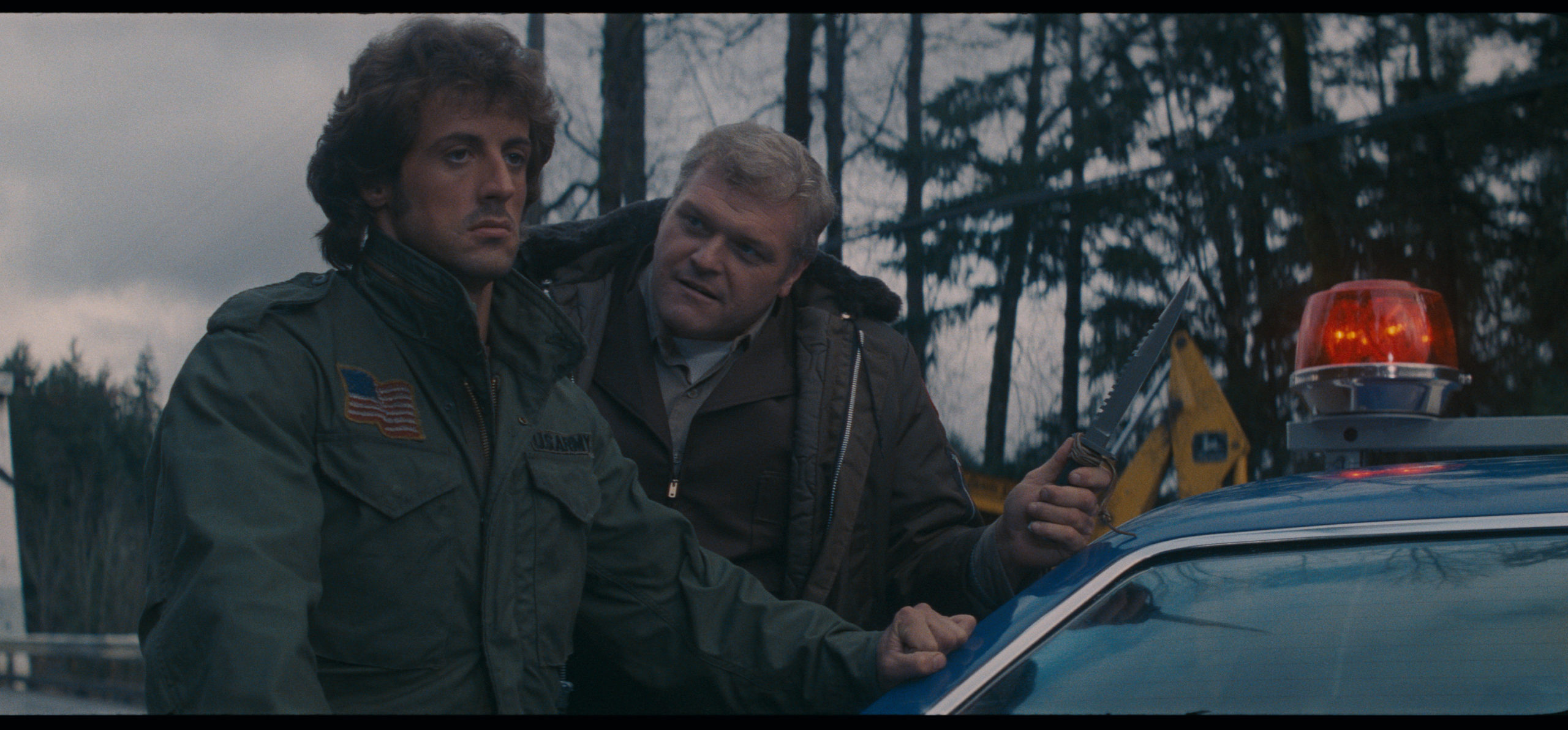 Jedoch geht es nicht nur um den Krieg daheim, um die Folgen für das Bewusstsein einer Kultur, sondern auch um die Psychologie. Der immer wieder unterschätzte Sylvester Stallone gibt gerade in diesem ersten Auftritt als John Rambo eine sehr sensible Darstellung eines Menschen ab, der niemals wirklich heimgekehrt ist. In den stillen Momenten, wenn er in der Nacht am Lagerfeuer sitzt und gerade einmal von seinen Verfolgern in Ruhe gelassen wird, zeigt sich das ganze Ausmaß dieses Traumas in der Nervosität und letztlich der Angst im Blick dieses Mannes, dessen Augen uns durch die Kamera hindurch anzublicken scheinen.