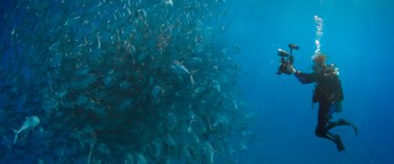 Auf ähnlich faszinierende Bilder stoßen die, die in der entgegengesetzten Richtung unterwegs sind: in die tiefsten Tiefen des Meeres. Schwärme von Fischen locken die Taucher hinunter, aufeinander abgestimmte Massen, wie von fremder Hand choreographiert, die einen Strudel zu erzeugen scheinen. Die Ozeanografin und Umweltaktivistin Sylvia Earle erforscht seit 60 Jahren die Geheimnisse der Tiefsee, als eine der ersten ist sie einen Kilometer tief hinabgestiegen. Sie wundert sich, dass man den Mond und den Mars besser kartographiert habe als die Weltmeere. Und das, obwohl klar sei, welchen Einfluss die Verschmutzung und Erwärmung der Ozeane auf uns alle habe – Stichwort Plastikmüll.