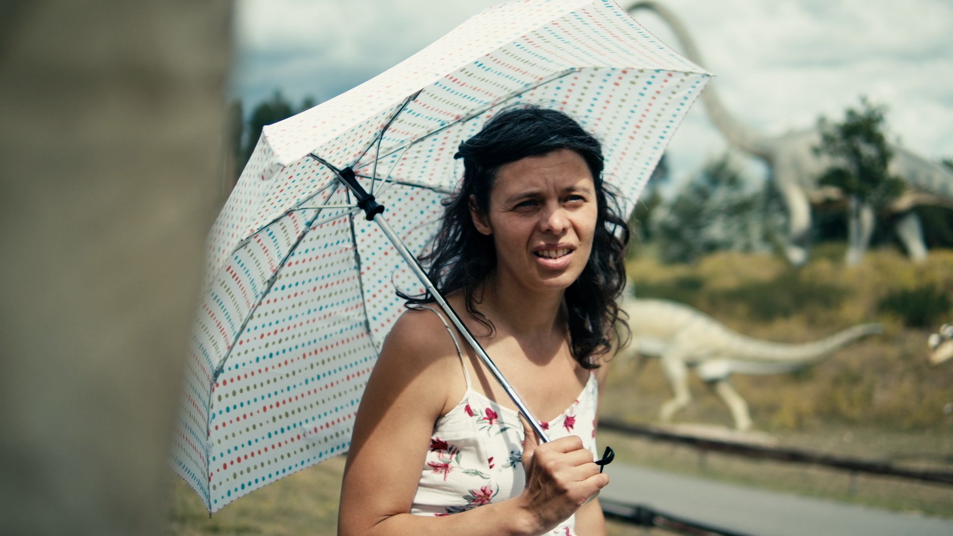 Daher sind die Bilder, die der Film für ein wohl lebenslanges Dilemma findet, wohltuend vielschichtig. Margarita Breitkreiz, die den einen Strang der Reflexion ganz allein trägt, ist plötzlich nicht mehr nur eine Person, sondern drei verschiedene, die womöglich unterschiedliche Persönlichkeitsanteile reflektieren. Später spaltet sich die Schauspielerin in eine Doppelrolle. In unterschiedlicher Aufmachung mimt sie Interviewerin und Interviewten zugleich. Die eine stellt interessante Fragen, der andere sagt kluge Dinge, aber nicht im klassischen Setting, sondern dort, wo die Bilder Assoziationsräume eröffnen, etwa in einem Tretboot auf der Spree oder einem Saurierpark.