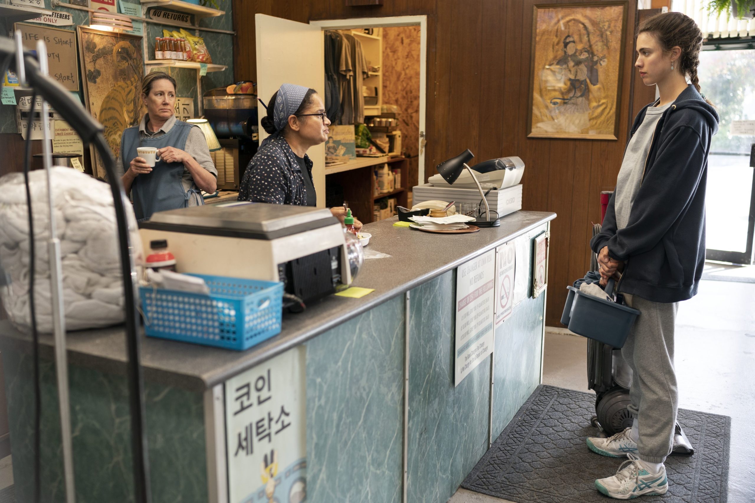 Am mangelnden Willen liegt das nicht. Von Anfang an ist sie fest entschlossen, ihr Leben in den Griff zu bekommen. Nur: Sie weiß nicht wie. Die ersten Folgen handeln dann auch davon, wie sie etwas ziellos umherstreift, auf der Suche nach einer Unterkunft, Arbeit oder anderweitiger Unterstützung. Das von Molly Smith Metzler entwickelte Maid zeigt sich an den Stellen durchaus gesellschaftskritisch, zeigt auf, wie absurd viele Bestimmungen in dem Bereich sind. Ohne Kinderbetreuung kann sie nicht arbeiten. Hat sie keine Arbeit, kann sie sich keine Wohnung leisten. Ohne die Wohnung wieder sieht es bei der Kinderbetreuung mau aus. Die Serie macht klar, wie jemand, der am Boden ist, oft nicht die Hilfe bekommt, die er braucht, weil bei dem Versuch, alles genau zu regeln, der einzelne Mensch auf der Strecke bleibt. Armut wird hier zu einem Teufelskreis, aus dem man aus eigener Kraft kaum herauskommt.