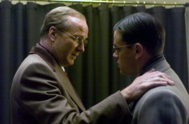 Das größte Manko ist dabei vielleicht noch die Hauptfigur selbst. Während beispielsweise J. Edgar ein Porträt des langjährigen FBI-Leiters, der eigenen Behäbigkeit zumindest noch eine faszinierend widersprüchliche Persönlichkeit entgegensetzte, fehlt das in Der gute Hirte. Wilson ist so sehr auf seine Arbeit fixiert, dass alles andere zur Nebensache wird. Man findet einfach keinen Zugang zu diesem Phlegmatiker, der allem mit bleierner Miene begegnet. Das ist in späteren Szenen, wenn die CIA zur verbrecherischen Foltermaschine mutiert, noch irgendwie erschreckend. Keine Brutalität schreckt ihn mehr, solange er glaubt, es sei für das Gute. Aber es findet eben keine Auseinandersetzung damit statt. Er ist nicht mehr als ein korrektes, undifferenziertes Monster, dessen mangelnde Menschlichkeit ihn für seine Position qualifizieren, aber nicht unbedingt zu einem interessanten Protagonisten machen.