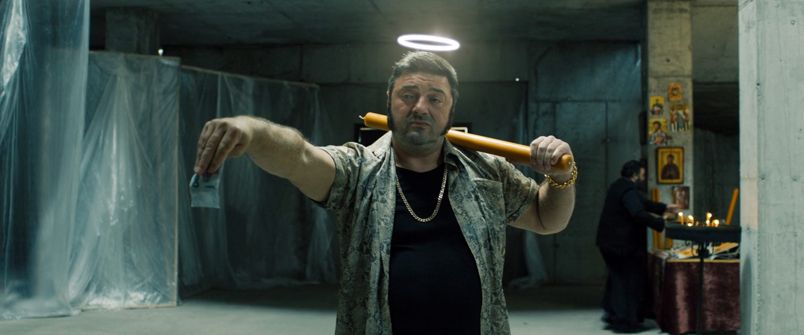 Dabei darf man zunächst noch ein wenig skeptisch sein. Ein Mann, der auf einmal einen Heiligenschein trägt und diesen nicht wieder los wird? Das ist zwar ein recht ungewöhnliches Szenario, lässt dann aber doch mehr auf albernen Slapstick schließen – zumal der Trailer ebenfalls in diese Richtung geht. Doch dieser Eindruck ist trügerisch. Was als harmlose Farce mit peinlich-komischen Momenten beginnt, nimmt mit der Zeit immer dunklere Töne an. Mütze tragen und vergeblich-verzweifeltes Waschen des Kopfes machen den Sünden Platz, die Stojan zunächst widerwillig ansammelt. Und auch die eskalieren mit der Zeit kräftig. Der Schein trügt zeigt uns nicht nur immer mehr Exzesse der verschiedensten Sorten, sondern vor allem auch einen Mann, der sich mit diesen verändert. Aus dem braven, simplen Gutmenschen wird jemand, der sich an seiner eigenen Grausamkeit berauscht.